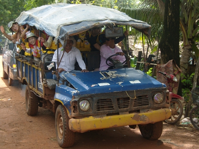넷째 날은 우물 전달식이 있는 날이었다. 프놈펜에서 차를 타고 남쪽으로 쉬지 않고 2시간을 달려가 Kampot주 Banteaymeas군 VoatAngk면 Kandal마을에 도착했다. 하늘이 정말 맑았다. 버스를 타고 가다가 버스가 들어가기 어려운 비포장도로에선 트럭을 개조한 차량에 옮겨 타고 들어갔다. 봉사원들은 이곳 마을을 보더니 마치 한국의 60~70년대 같다고 말했다. 전기가 들어오지도, 수도가 들어오지도 않는 낙후된 곳인데, 한 집만 그런 게 아니라 다들 그렇게 살고 있었다.