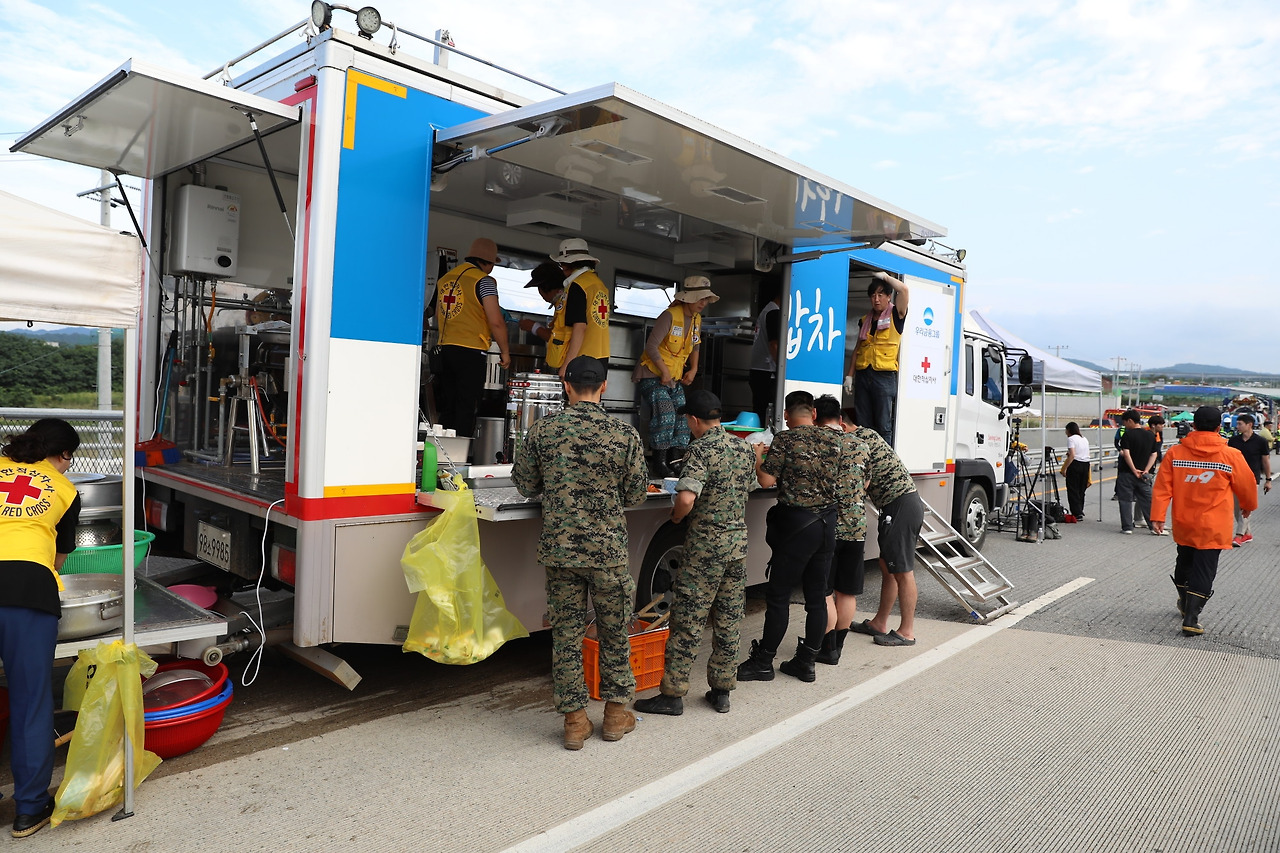 올해는 지사로 다시 자리를 옮겼기 때문에 직원들과 함께 재난상황을 주시하고 있다. 오늘은 새벽부터 비가 아주 거세게 내렸다. 구호담당 직원은 옥천에 호우경보가 발령돼 구호품이 나가야 할지 몰라 새벽 3시에 사무실에 출근했다. 다행히도 비는 왔다 그쳤다를 반복했다. 점심 일찍 먹고 책상에 앉았는데, 밖에서 확성기 소리가 들렸다. 고개 돌려 내다보니 오송 참사 1주기 추모 주간을 맞이해 유가족과 추모단이 시내로 행진을 하고 있었다. 모두가 재난 없는 안전한 사회를 바라고 있다. 올해는 잘 지나가기를 바랄 뿐이다.
