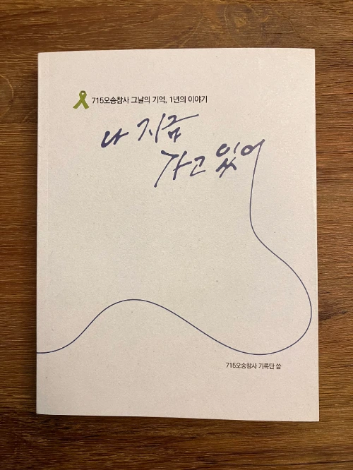 그로부터 1년이 흘렀다. 궁평2지하차도는 여전히 개통되지 못하고 있다. 재난이 발생하여 직접 피해를 입은 당사자를 비롯해 가족, 목격자 등을 재난경험자라고 한다. 오송 참사로 재난경험자가 된 유가족과 생존자들은 그날을 어떻게 기억할까? 그리고 지난 1년을 어떻게 살았을까? 최근 이를 엿볼 수 있는 책이 한 권 나왔다. 바로 715오송참사 기록단이 쓴 <나 지금 가고 있어>다.