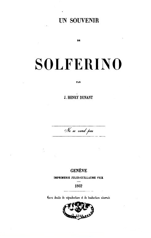 앙리뒤낭은 1828. 5. 8 스위스 제네바에서 태어났다. 어릴 적부터 약자에 대한 연민과 인류애가 강한 사람이었다고 한다. 사업가였던 앙리뒤낭은 1859년 6월 운명적인 사건을 접하게 된다. 이탈리아 통일전쟁 당시 프랑스-사르드니아 연합군과 오스트리아군의 솔페리노 전투가 막 끝난 시점에 그는 이 전장을 지나다 처참한 광경을 목격하였다. 15시간의 전투에서 4만여 명의 사상자가 발생한 아비규환의 현장을 보고 앙리뒤낭은 사업 목적은 접어두고 마을 부녀자들을 동원하여 2주간 부상자들을 돌보았다. 그리고 3년이 지난 1862년에 그가 목격했던 전쟁의 참혹한 현장과 부상자를 돌본 경험, 그리고 미래를 위한 제안을 묶어 <솔페리노의 회상(A memory of Solferino)>라는 책을 펴냈다.