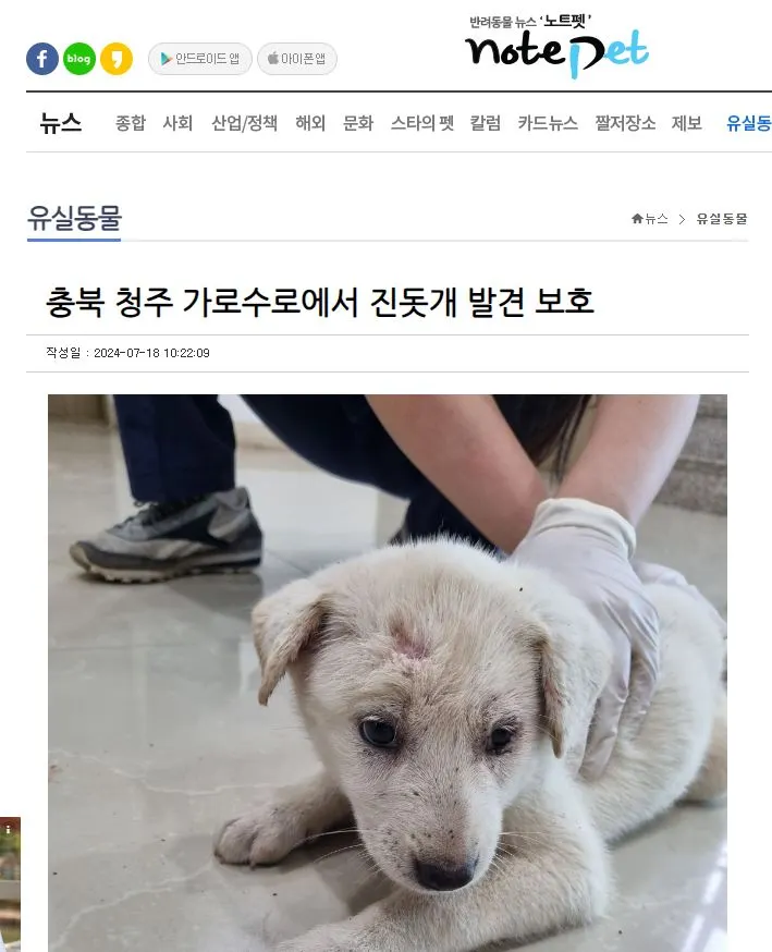 반려동물 신문이 있는 걸 이번에 알았다. 처장님이 적십자 기사를 검색하다가 동물보호센터로 보낸 다섯 마리 새끼 진돗개 기사를 찾아내셨다. 동물보호센터에서 유실동물로 등록하면 기사가 나가나 보다.