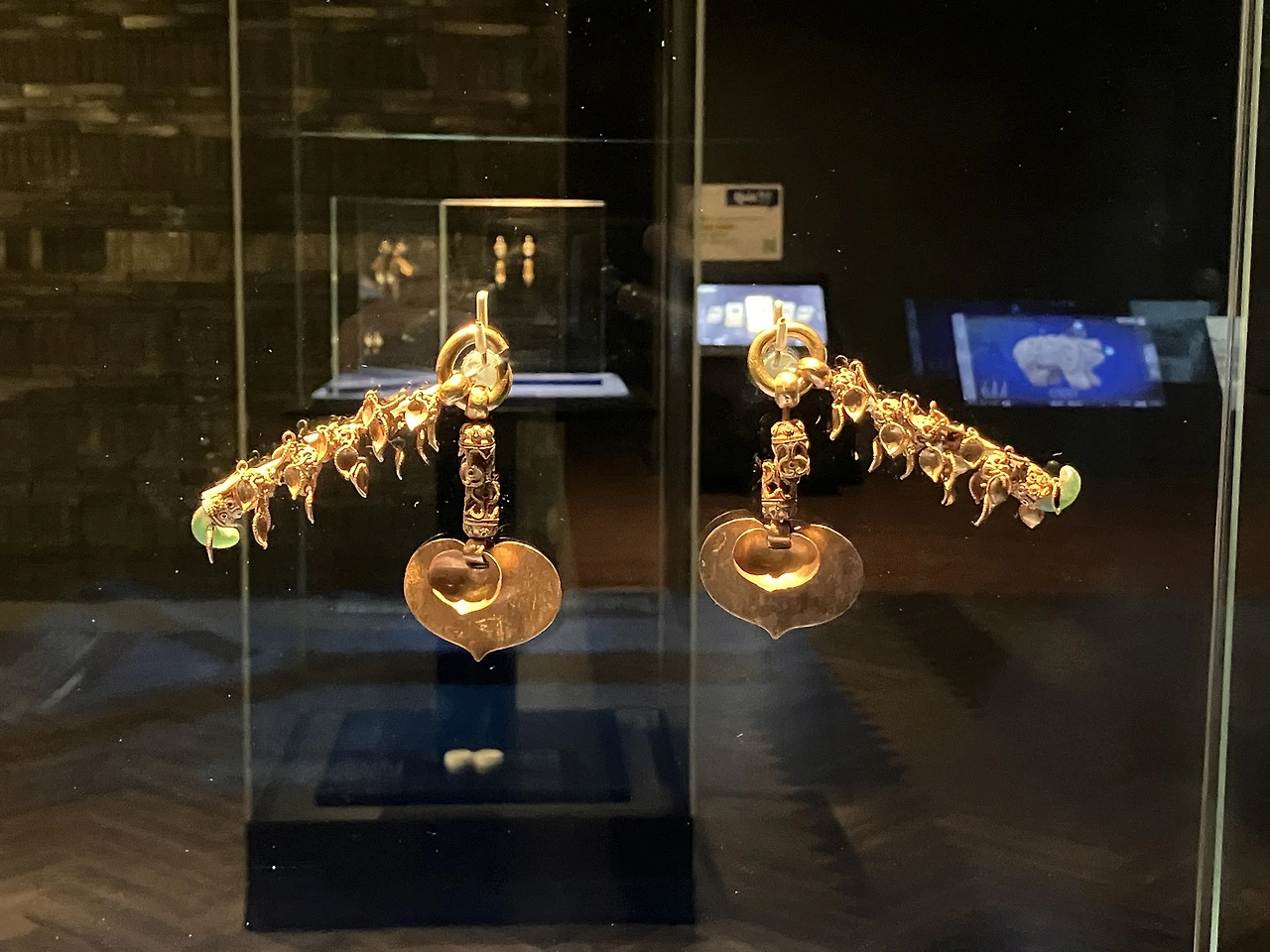 무령왕릉에서는 총 다섯 쌍의 금귀걸이가 출토되었다고 한다. 그중 한 쌍은 무령왕의 것이고, 나머지 네 쌍은 무령왕비의 것이다. 이 중 무령왕 귀걸이 1쌍, 무령왕비 귀걸이 2쌍 묶음이 국보다. 실제로 달고 다녔을까? 귀가 떨어질 것 같이 무거웠을 것 같다는 생각도 든다.