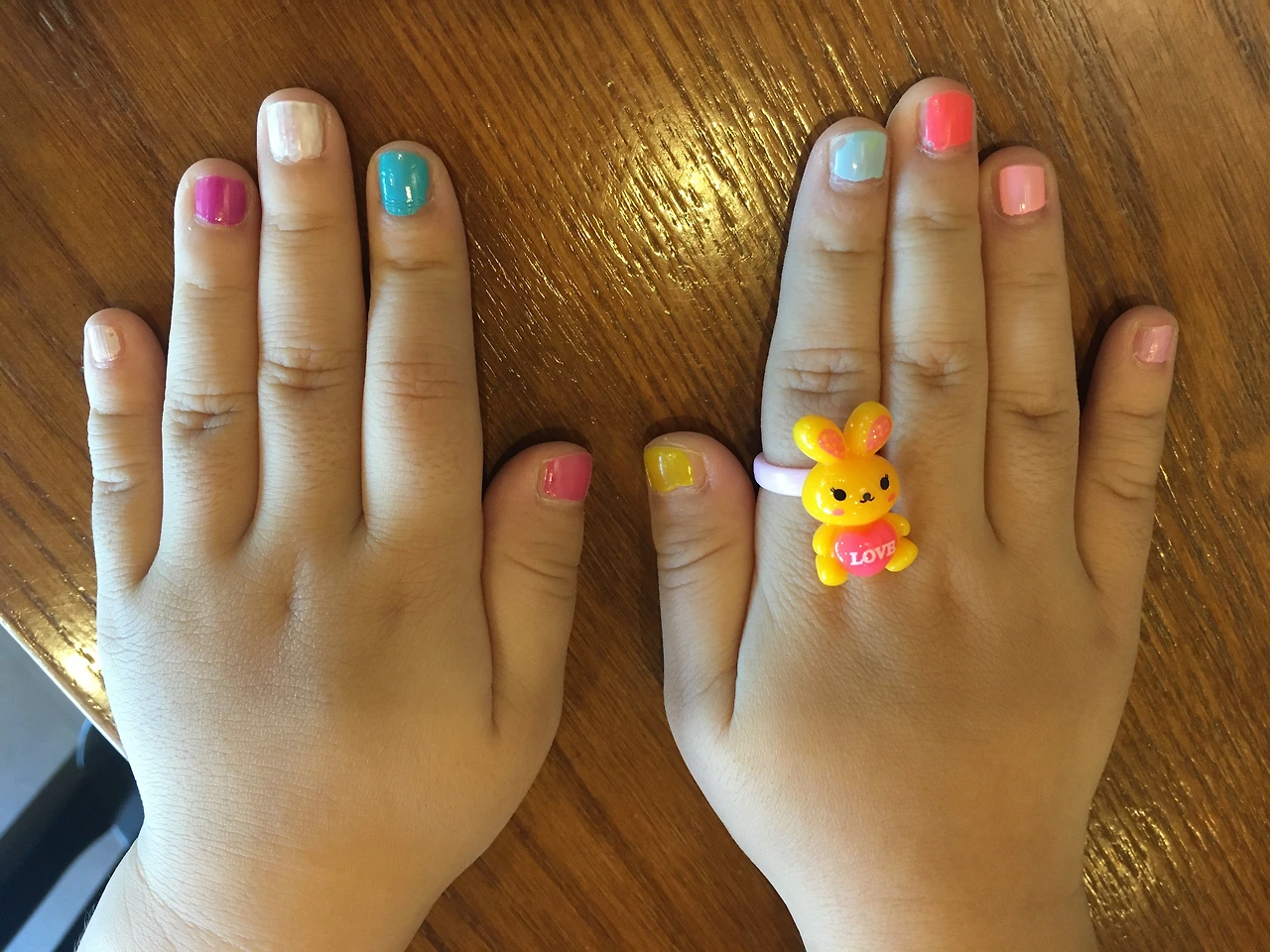 세 살 때랑 달라진 건 이젠 손톱칠뿐만 아니라 반지까지 좋아해서 손에 토끼 반지까지 끼워져 있다는 것.