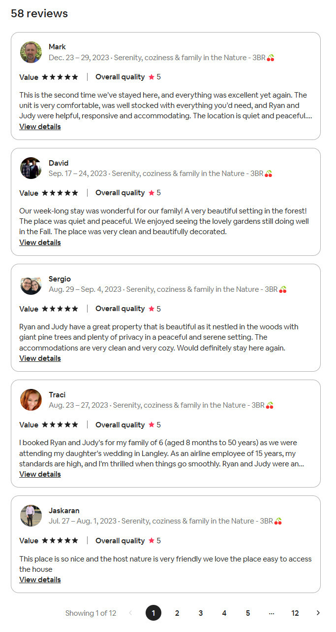 도시에서 약간은 떨어져 있는 장소임에도 꾸준히 손님을 받을 수 있다는데 여전한 놀라움과 감사다. 심지어 팬데믹 때에도 심심찮게 손님이 찾아줬는데, 작년에도 상당히 많이 등록이 되었었다. 한번 왔던 손님이 개인적으로 다시 연락 오는 케이스를 포함하면 Airbnb가 주는 통계보다 두배 가까이 좋은 성적이다.