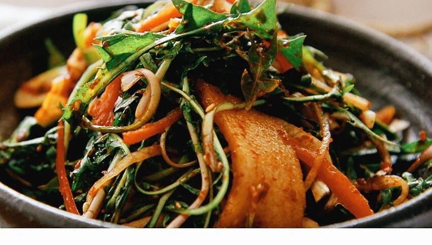 그 민들레가 정원사의 식탁에 올라왔다. 원수의 만남은 다리 위가 아닌, 밥상 위에서다. 정원사의 선택은 뱉던지 씹던지 해야 한다 이 오묘한 맛의 민들레가 김치가 되었다.