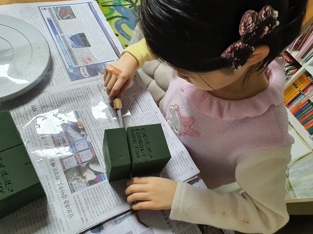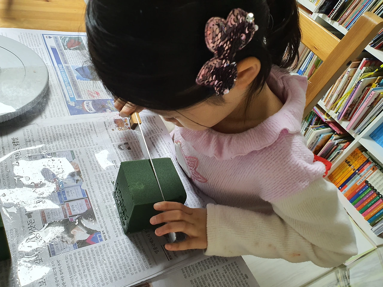손가락을 이용해서 플로럴폼에 꽂는 행위가 이렇게 소근육 발달에도 좋지 않을까 하는 생각도 듭니다.