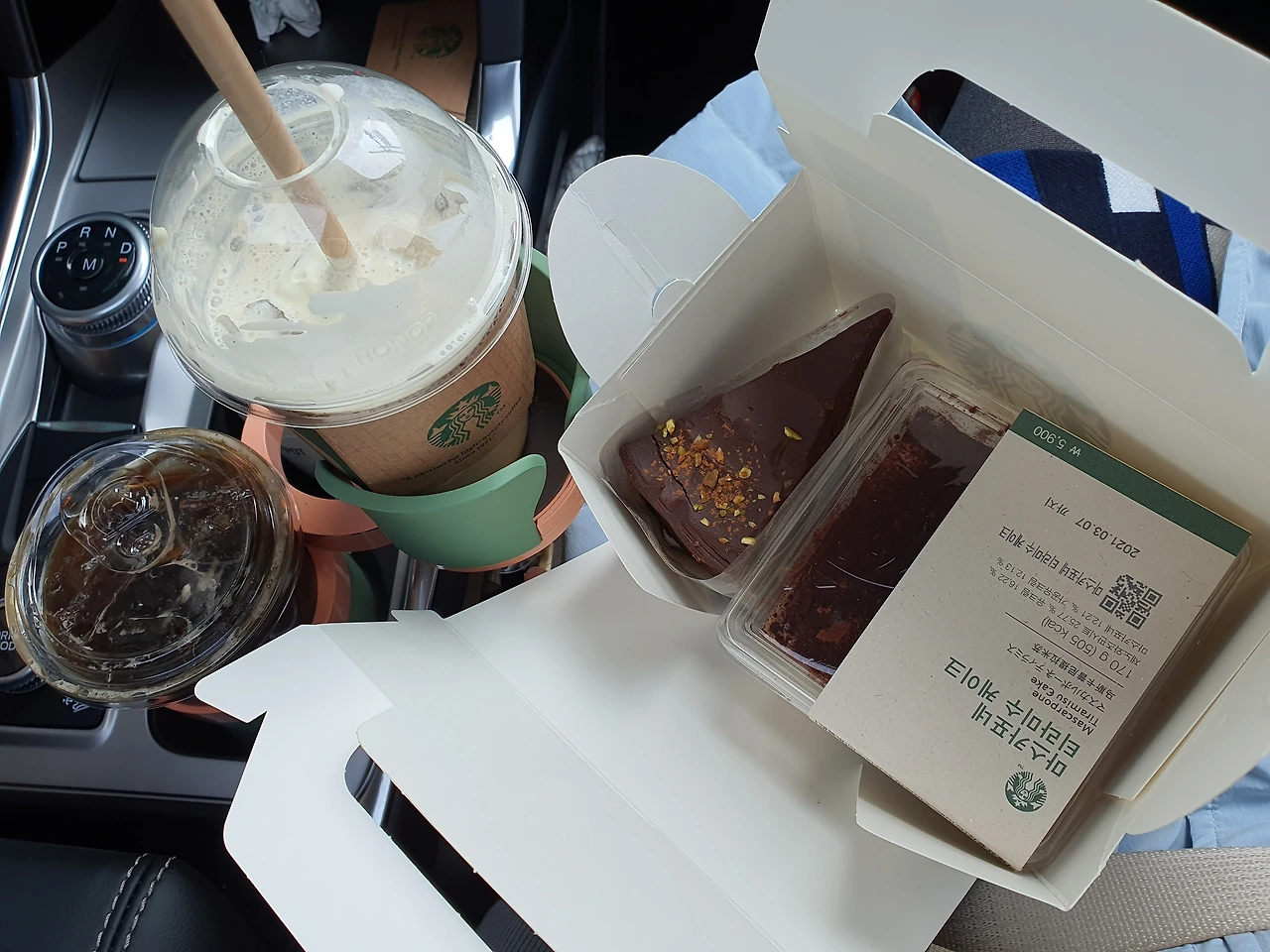 집에서만 있는 저를 위해 남편은 주말에 차로 드라이브도 시켜주고, 카페 나들이 대신 드라이브 스루 커피점에서 좋아하는 음료와 티라미수 케이크를 포장해서 기분전환을 시켜주곤 했습니다.