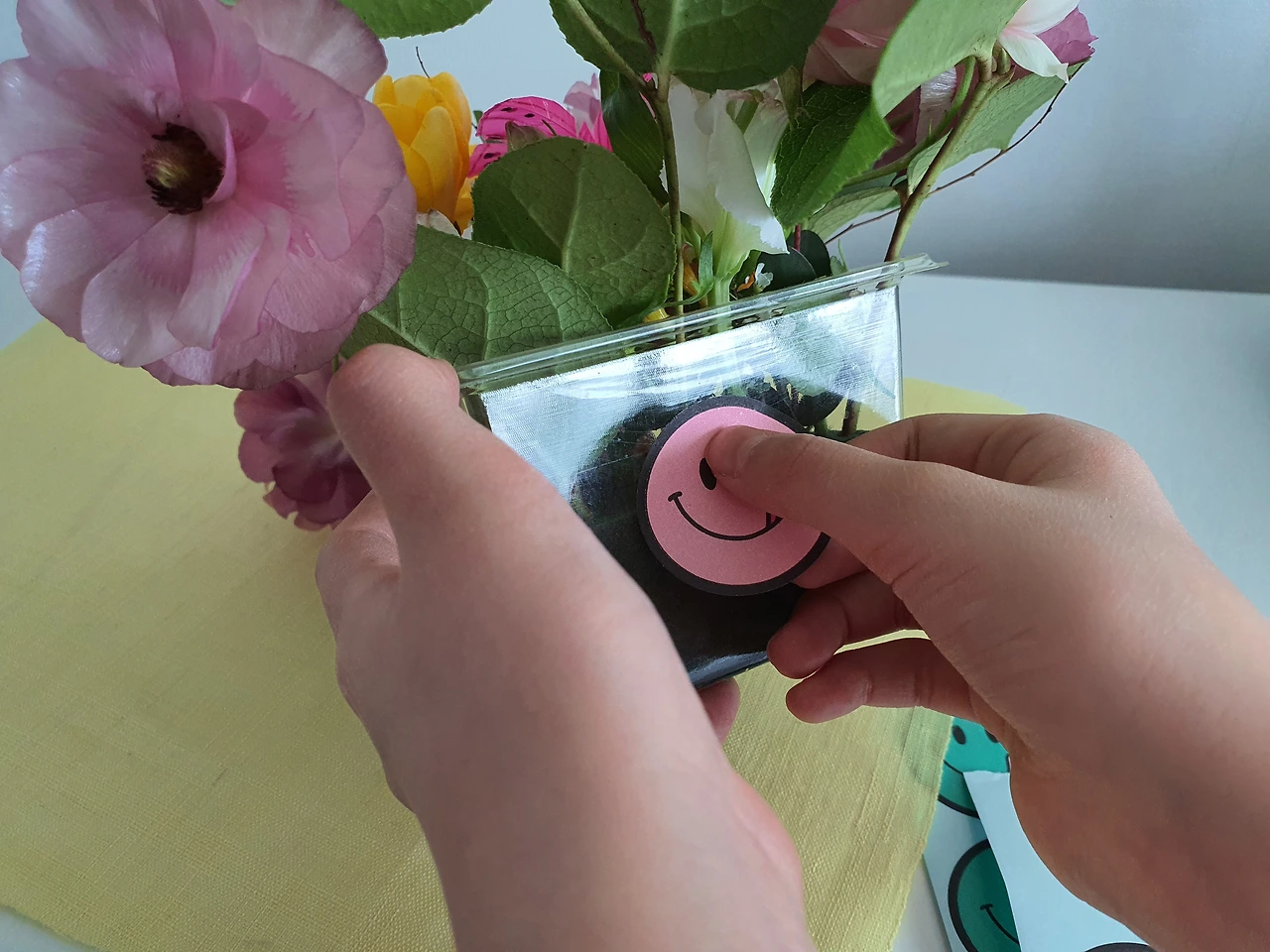 마지막으로 노티드 도넛에서 받아온 귀여운 스마일 스티커도 플라스틱 케이스에 붙여주었습니다.