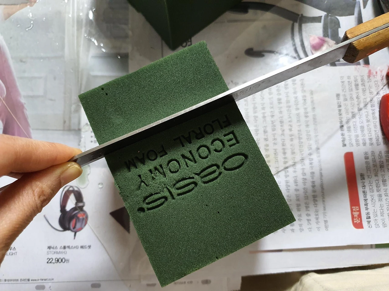 플로럴폼이 꽉 채워지지 않아서 흔들리더라구요. 공간이 뜨는 부분만 제가 조금 더 잘라 메워주었습니다.