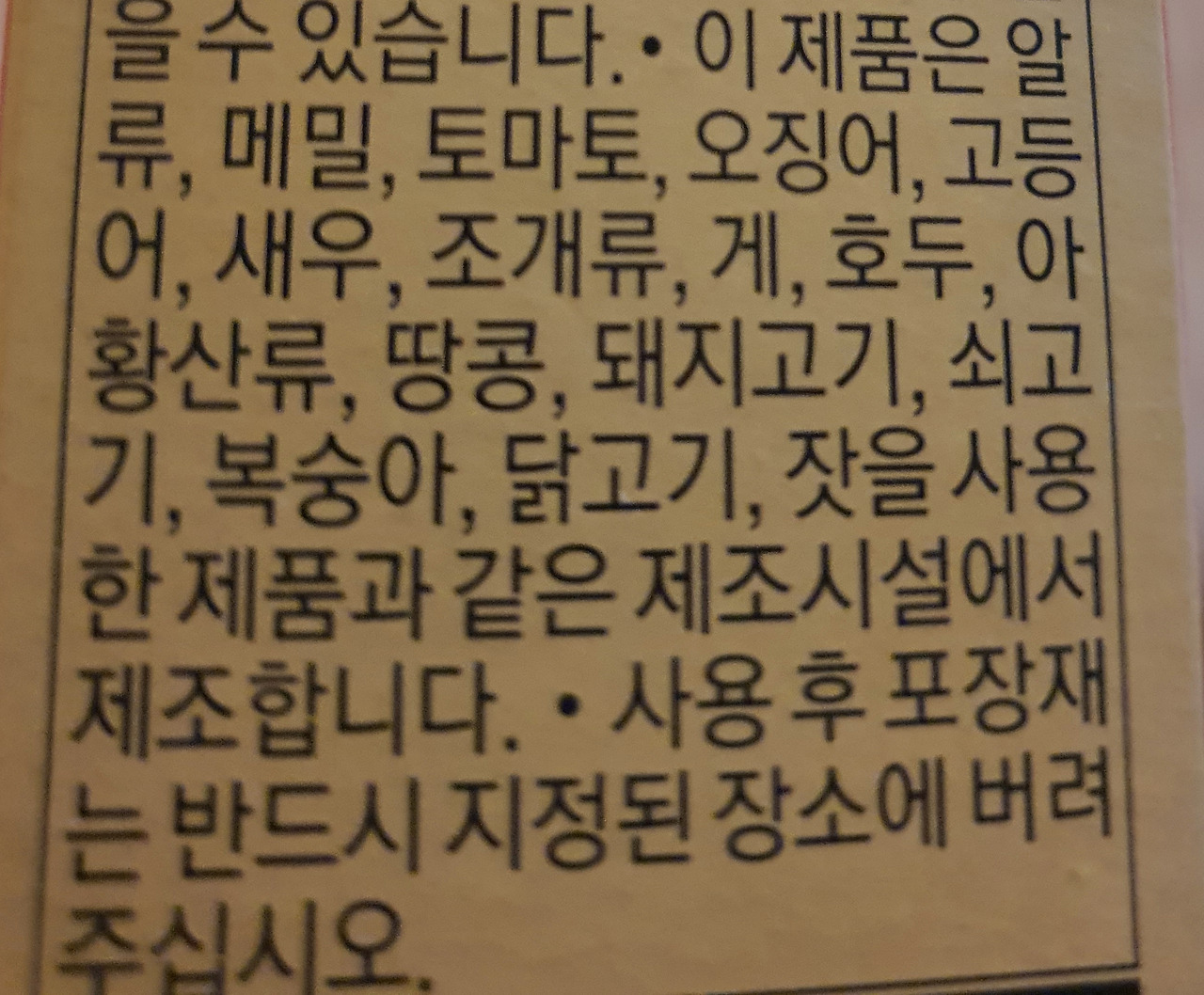 우리가 흔히 보는 식품 포장에서 볼 수 있는 문구이다. 보통사람들에게는 아무렇지 않은 것들이, 특정 알레르기를 가진 사람에게는 교차오염조차 치명적일 수 있기에 정보를 알려줘야 하는 것이다.