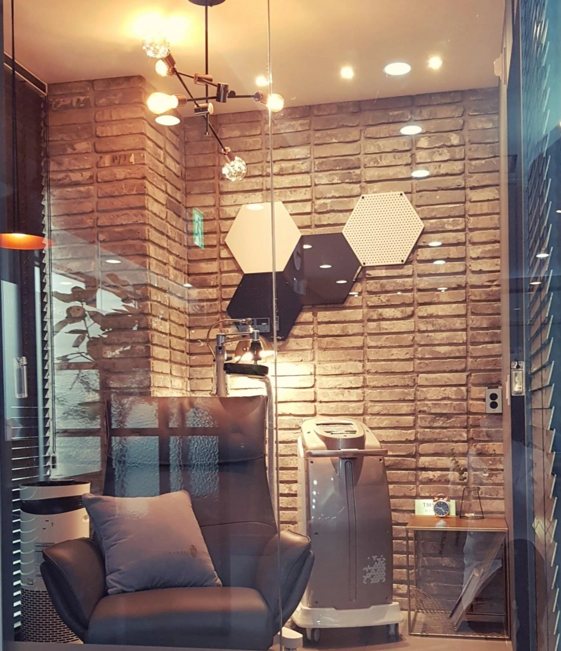 치료실은 조그만 방에 편안해 보이는 리클라이너와 그 위에 8자 모양의 플라스틱 기계가 있었다.