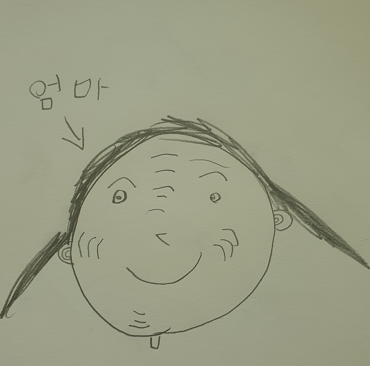 <아들이 평소엔 엄마를 그릴때 눈코입과 같이 꼭 필요한 부분이 바로 주름이다. 평소엔 엄마를 저렇게 그려놓곤 본인이 필요할땐 꽃으로 포장하는 임기응변의 소유자>