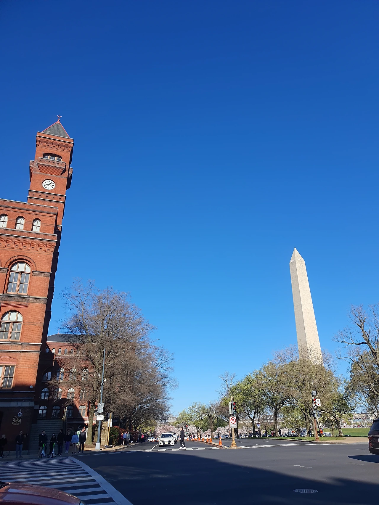 <같은 날 찍은 벚꽃길이지만, 왼쪽처럼 찍으면 여의도랑 뭐가다르냐는 비난을 막기위해 오른쪽 처럼 미국의 상징물과 함께 찍어본다 >