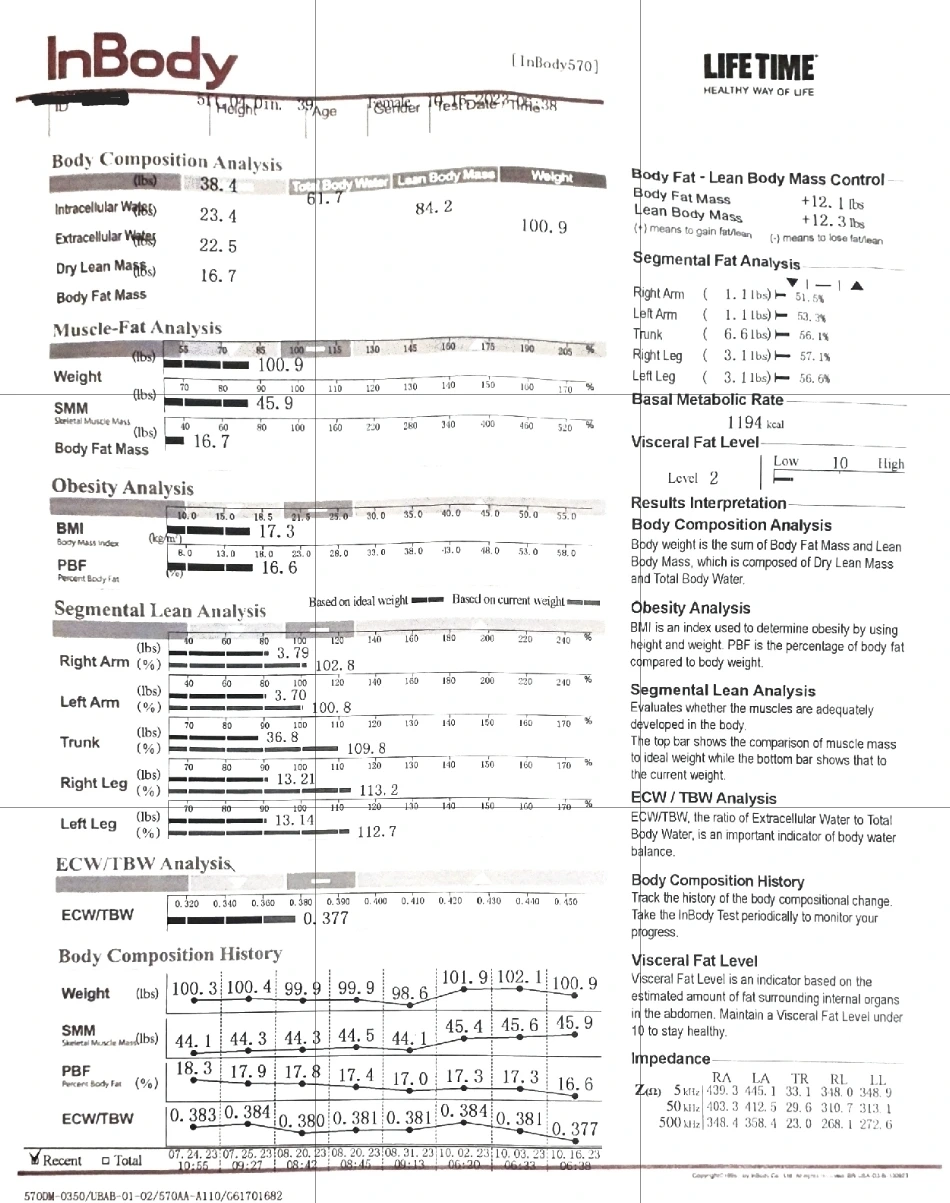 운동 전과 달라진 게 많진 않지만, 다른 건 몰라도 내장지방수치(Visceral Fat Level)가 3단계에서 2단계로 내려갔다. 하하
