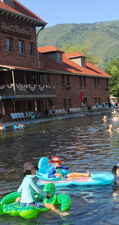 캠핑 후 다음날은 평소보다 1.5배 더 초췌한 몰골로 돌아다닌다. 출렁이는 에어매트리스 위에서 아이 둘 사이에 샌드위치처럼 끼어서 잔 탓도 있지만, 따로 샤워장이 없던 이 캠핑장의 경우는 못 씻어서 행색이 더 꼬질꼬질했다. 그래서였을까. 다음 행선지로 가는 도중에 온천이 있는 게 반가웠다. '글렌우드(Glenwood)'는 로키산맥을 보며 즐기는 미네랄 온천이었다. 따뜻한 물에 들어가니 긴장된 근육이 흐물흐물 풀리는 기분이었다. 튜브에 탄 아이들과 함께 놀아주느라 온천 특유의 고즈넉함은 느낄 수는 없었지만, 대신 아이들과 물놀이를 하며 즐거운 시간을 보냈다.(튜브 금지, 소란 금지 이런 푯말이 있었음 더 좋았겠다는 생각이 간절했지만 말이다. 하하하)