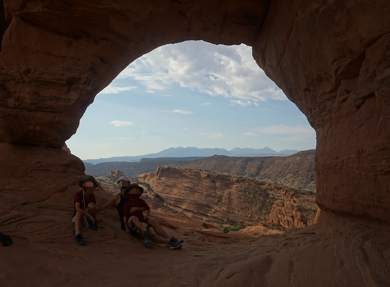 해가 뜨기 전부터 걷기 시작했는데 목표로 한 '델리케이트 아치'까지 왕복 3시간 정도 걸렸다. 확실히 해가 뜨고 나서부터는 급격하게 더워져서 아침 9시경에는 어깨가 절로 축축 처졌다. 사실 아치스 국립공원에는 다양한 아치가 있다. 아이들과 함께 하기에 좀 더 쉬운 코스를 해야 하나 고민도 했지만, 시간이 여유롭지 않기에 하나만 간다면 상징성이 있는 곳을 가자, 해서 간 곳이 델리케이트 아치였다. 가서 보니 탁월한 선택이었지만, 가는 길은 녹녹지 않았다. 평범한 기후에 평지를 3시간 걸어도 힘들어하는 아이들을 눈뜨자마자 사막에서 3시간 트레일 하는 것은 쉽지 않았기 때문이다. 포기하지 않고 완주한 비법(?)이 있다면 주위를 분산시키는 것이었다. 6세 아동에게는 끝말잇기가 제격이었다.내 차례가 돌아왔을 때 적당히 뜸 들이면서 시간을 벌며 쉬기도 하고, 마지막엔 생각 못하는 척하면서 아쉽게 져주기로 끝내면 완벽했다. (그렇게 3시간 끝말잇기를 하고 난 후면 2시간은 아무 말도 하기 싫은 부작용이 있긴 하다. 하하하)