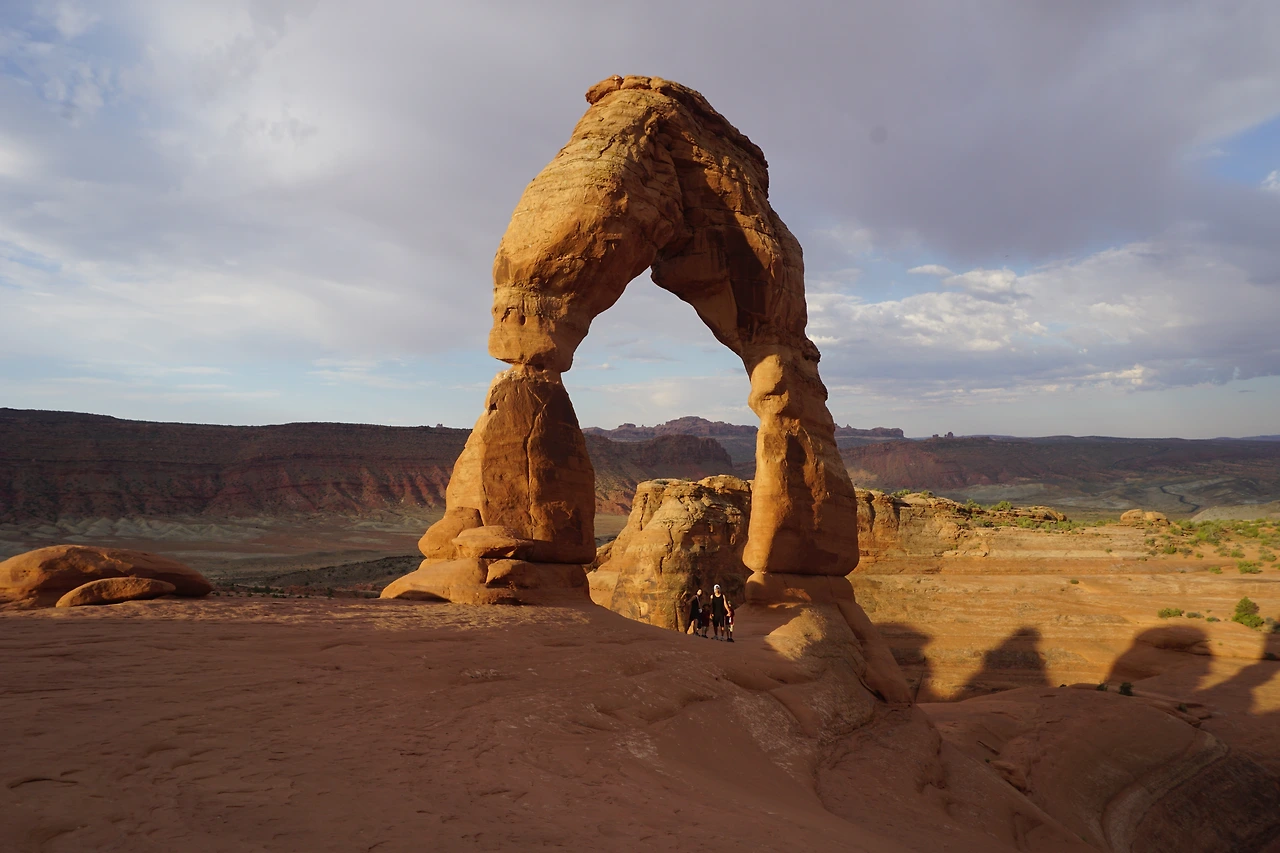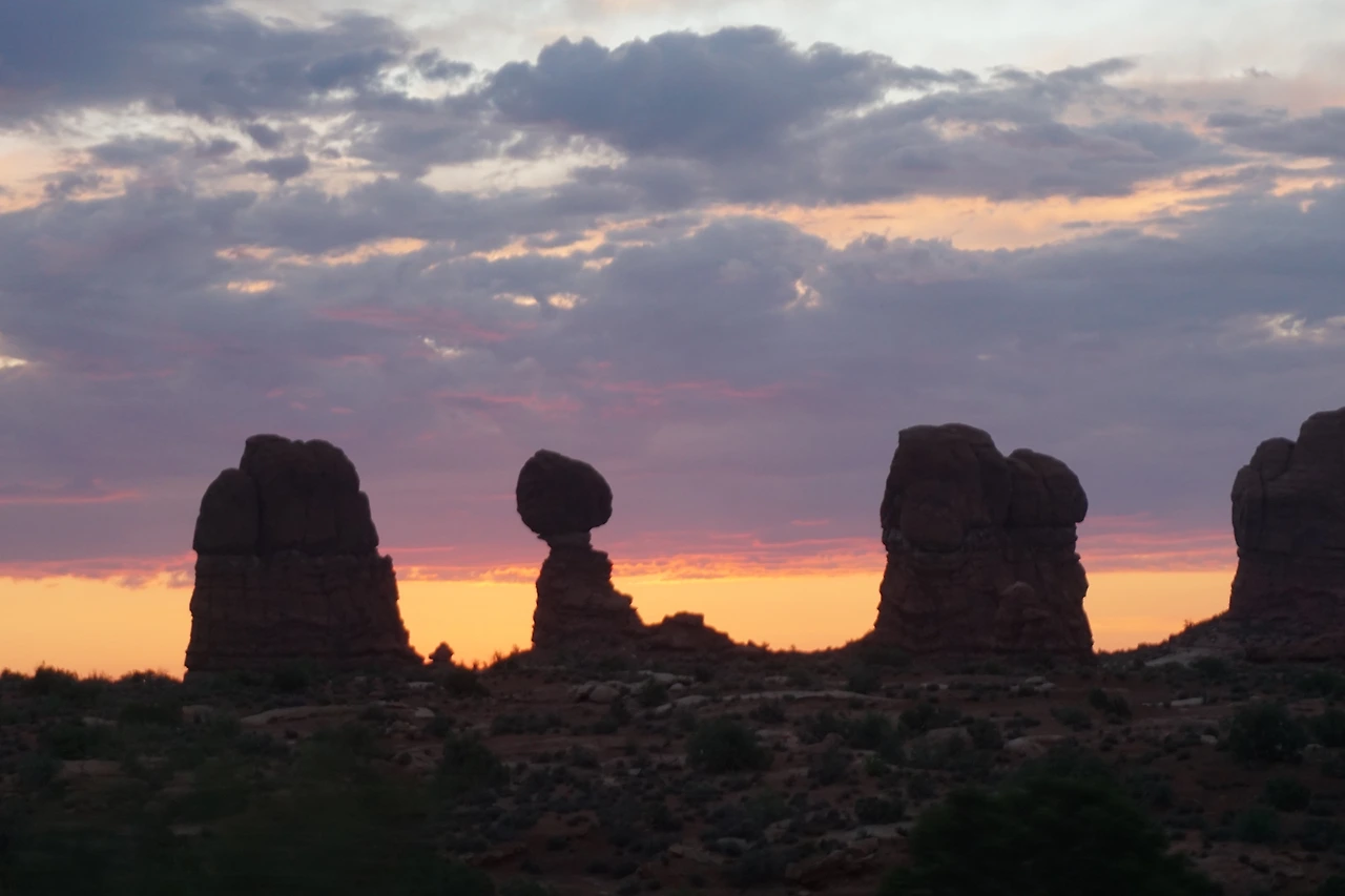 온천을 마치고는 열심히 달려서 유타주에 있는 '아치스 국립공원(Arches National Park)'에 갔다. 물, 바람, 기온 변화에 의한 침식과 풍화 작용으로 수백만 년에 걸쳐 형성된 약 2,000개의 아치가 있는 곳이다. 여기서부터는 한 번도 경험하지 못했던 사막 기후였다. '덥다'라는 단어로는 표현이 부족한 뜨거움이 사방을 둘러싸고 있었고 조금만 말을 해 도 곧 목이 건조해지는 느낌이었다. 그나마 해가 없는 새벽 또는 저녁에 구경할 수 있다기에 해가 지고 서둘러 갔다. 원래는 저녁에 2시간 정도 트래킹을 하려고 했으나 점점 어두워지는 하늘과 수면 시간이 다가옴과 비례하여 커지는 아이들의 칭얼거림을 못 견디고 다시 숙소로 왔다. 다음날 새벽 5시 기상하여 다시 오기로 하고 말이다.