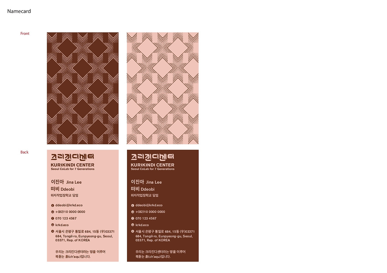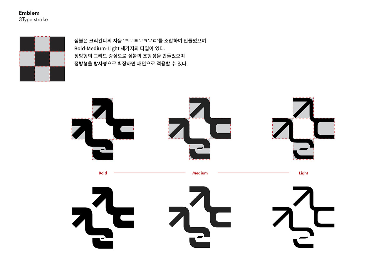 이에 디자인 그룹 '들토끼들'은 크리킨디센터의 로고에 위라코차 양식의 시각적 특징을 적극적으로 반영하였습니다. 단순한 구조(emblem)에서 시작하여 무한대로 확장이 가능하고(pattern), 누구나 쉽게 기본 단위의 조각을 연결, 반복시키며 새로운 이미지를 생산해 내는 것이 기본방향입니다.