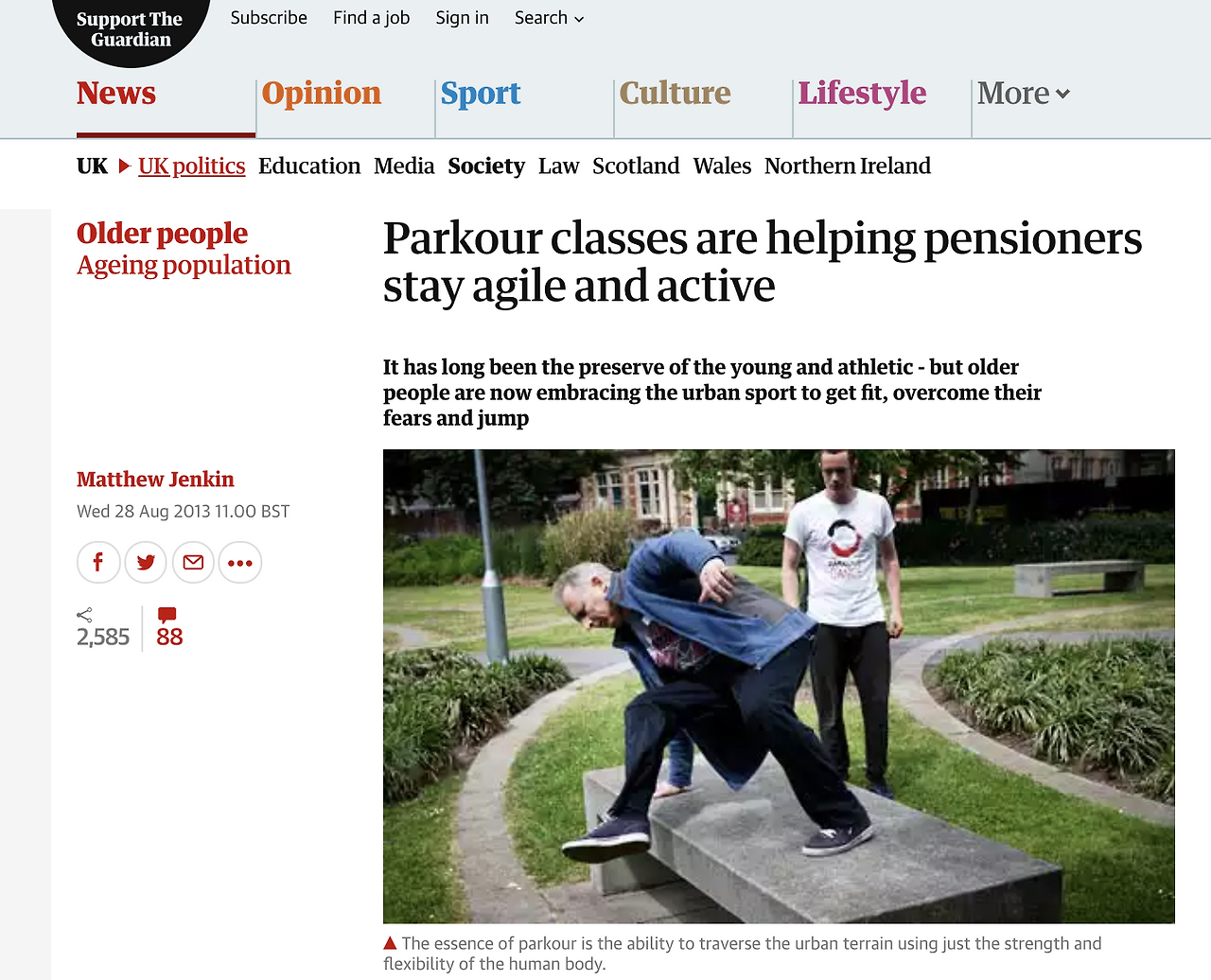 * 관련 기사 : Parkour classes are helping pensioners stay agile and active (가디언 UK, 2013.8.23)