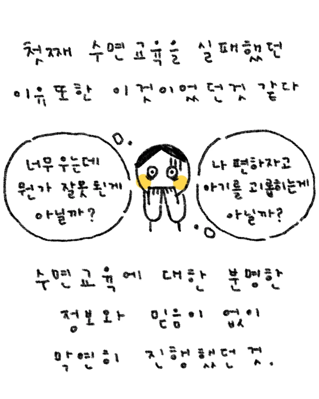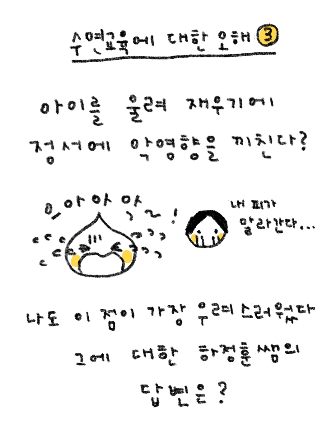 수면교육을 주저하게 했던 몇가지 오해들을 짚어봤어요. 아주 개인적인 이야기지만 어떤 분들은 공감이 가실수도 있겠죠?