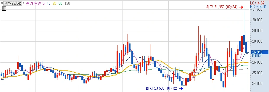 코로나는 당시 빅스가 80까지 올라갔었지만, 전쟁은 금방 끝날 거란 생각에 일찍 들어갔고 버텼다.