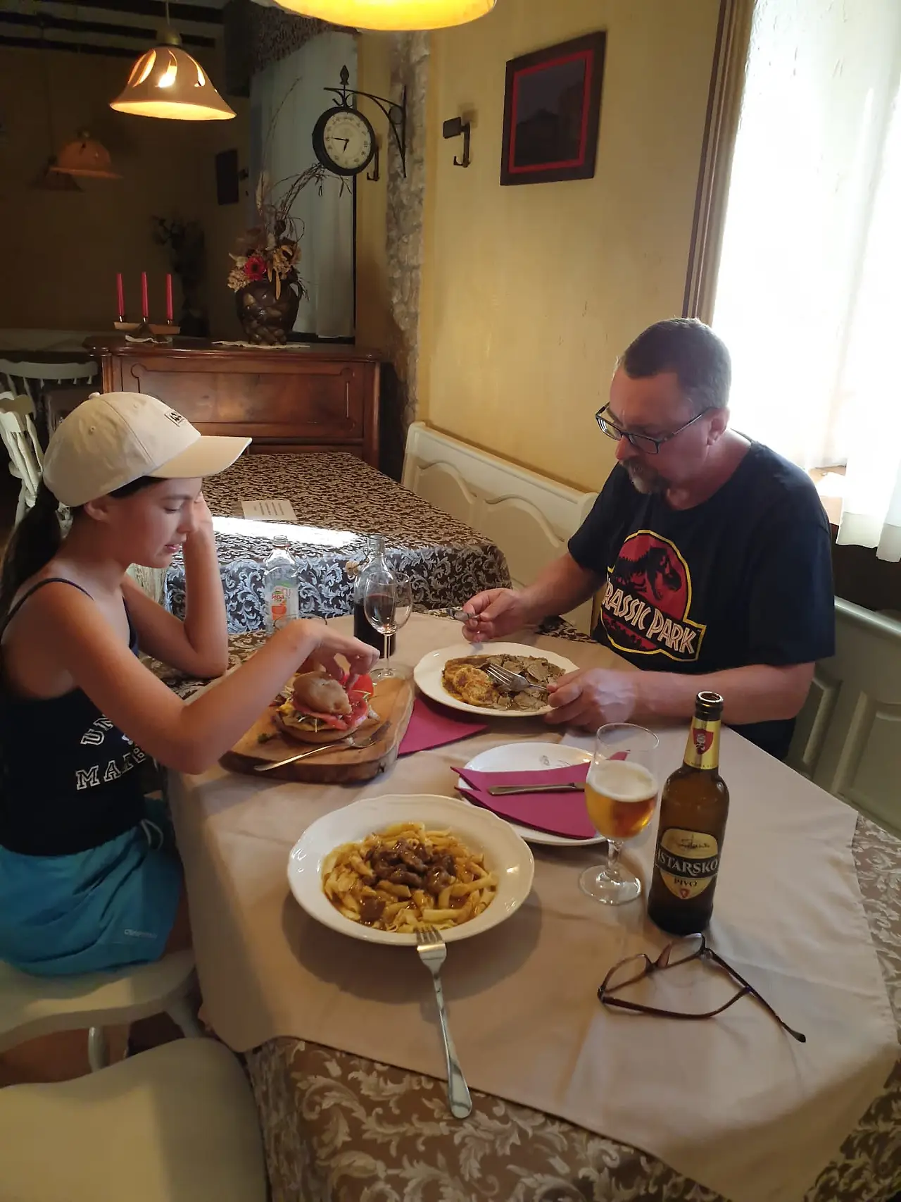 처음 이 식당에 들어왔을때 메뉴에서 트러플을 보고 방만구 씨는 환호를 했다. 평생 먹어보지 못한 트러플에 이 식당에서 직접 담근 포도주를 마실 수 있다니! 하면서. 늘 로컬식당 염불을 하더니 드디어 소원을 이뤘다. 그리하여 그는 감자전과 고기가 곁들여진 트러플 요리를, 나는 굴라쉬 수프가 올려진 국수를, 미나는 계란후라이, 토마토 그리고 루콜라가 들어간 햄버거를 주문했다. 하나같이 우리가 맛본 요리와는 조합이 다른 요리들이었고 맛이 좋았다.