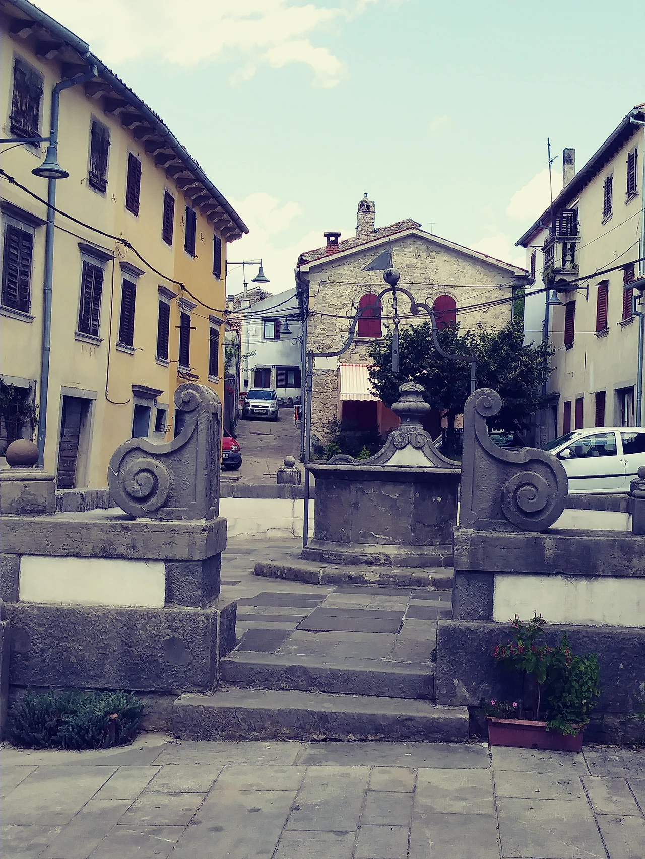 Roc에서 9km떨어진 이웃동네 Buzet. 동네 중심가에 우물이 있고 그 주변으로 집들이 빙 둘러져있다.
