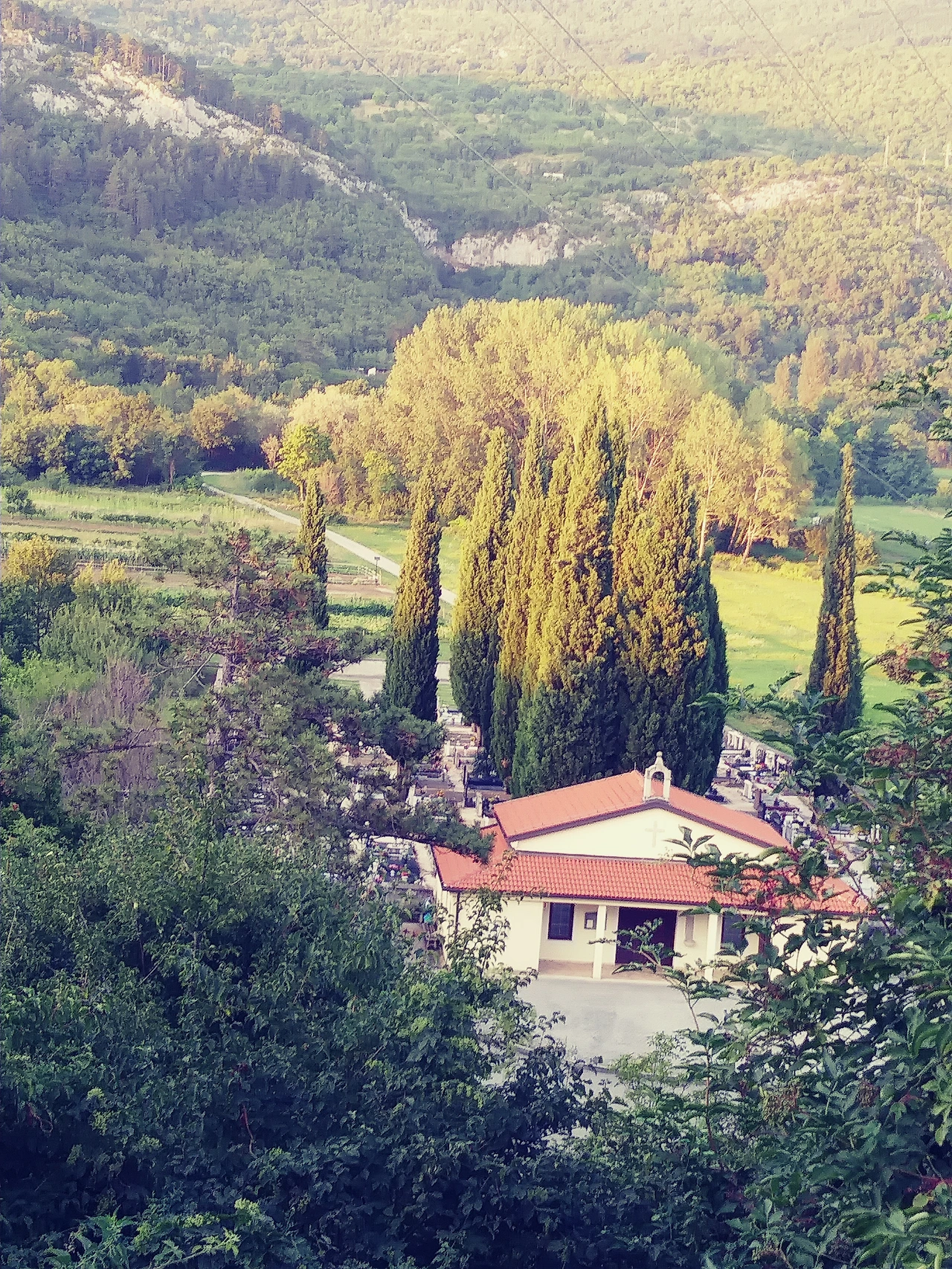 빨간지붕이 공동묘지 카펠레. 그 뒤로 나있는 길로 우리는 산책을 갔는데 그 길로 다니는 것은 우리말고 개미새끼 한 마리도 없었다.