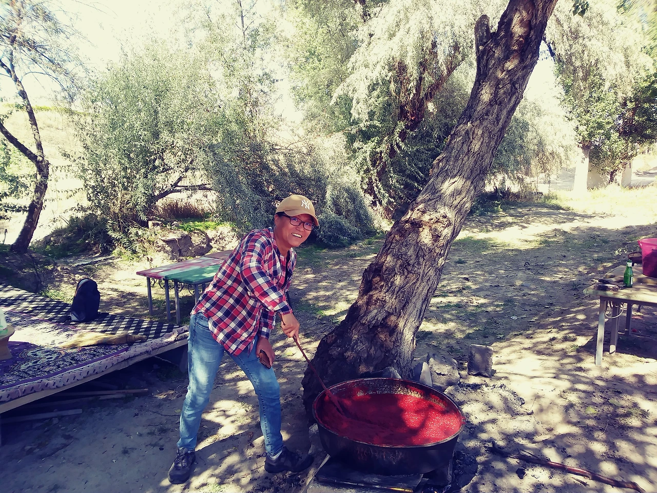 찻물이 끓는 중. 노부부가 노점에서 토마토 소스와 차를 팔았다. 나는 소스도 저어드리고 나뭇가지도 주워다 드리는 등 한나절을 여기서 보냈다.