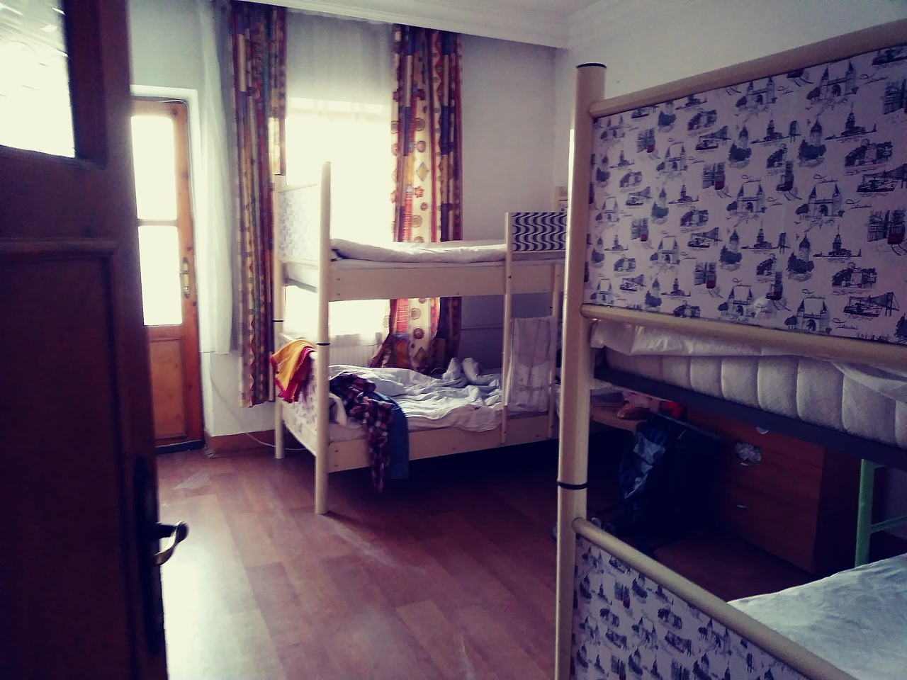 나의 방. 모든 시설들이 저렴. 방문은 얇은 합판. 그마저도 문을 열면 끼익 소리가 남. 공동 샤워실의 나무문은 아래가 이미 썩어서 거뭇거뭇함. 그래도 1박에 7유로라 눈감아 줌.