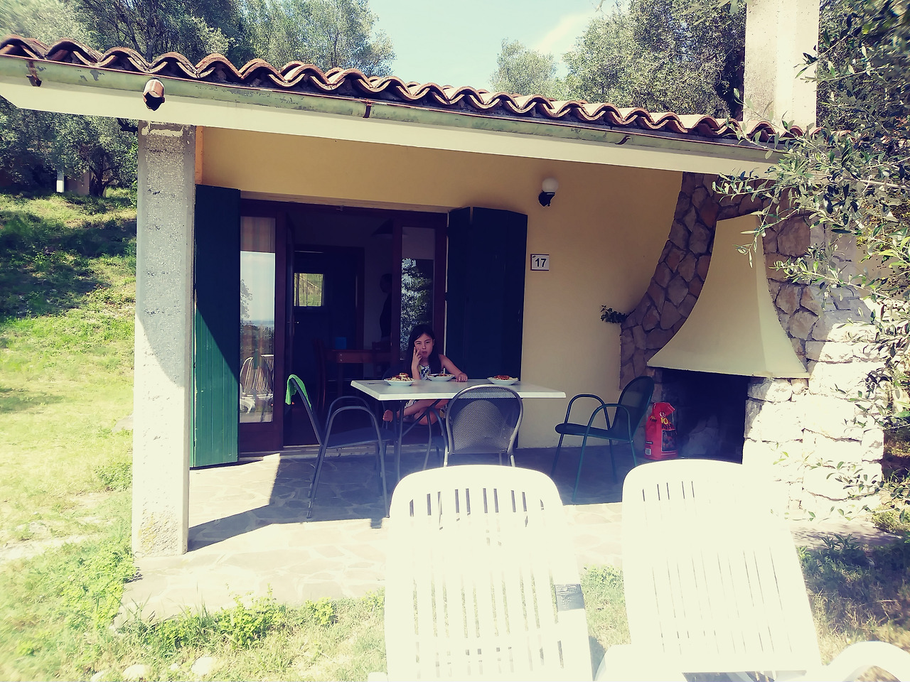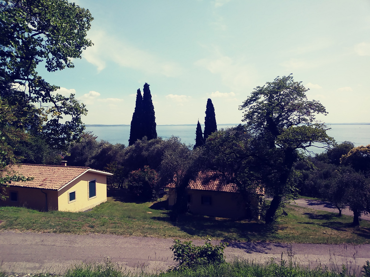 우리는 짐을 잔뜩 실고 이태리로 출발했다. 보통 여름방학이 시작되면 오스트리아와 이탈리아 국경지방인 브렌너의 교통체증이 말이 아닌데 이번 만큼은 길이 뻥 뚫렸다. 단 한 번의 체증도 없이 우리는 네비게이션에서 안내해주는 도착시간보다 무려 20분이나 빠르게 목적지에 도착했다. 내가 점찍어둔 방갈로, 출발하기 하루 전에 예약하는 바람에 이제나 저제나 예약을 못하게 될까봐 조마조마했던 방갈로는 나의 예상과는 달리 5분의 4가 텅텅 비어있었다. 그래서 우리는 자동차로 2만 평방미터에 달하는 이곳 방갈로 전체를 둘러보며 우리가 들어가고 싶은 곳을 찾아 들어갈 수 있었다. 뒤에는 멋진 돌산에 병풍처럼 둘러 쌓여있고 앞으로는 가르다 호수가 훤히 보이는 훌륭한 뷰를 갖춘 17호 방갈로로 우리는 이삿짐을 들였다.