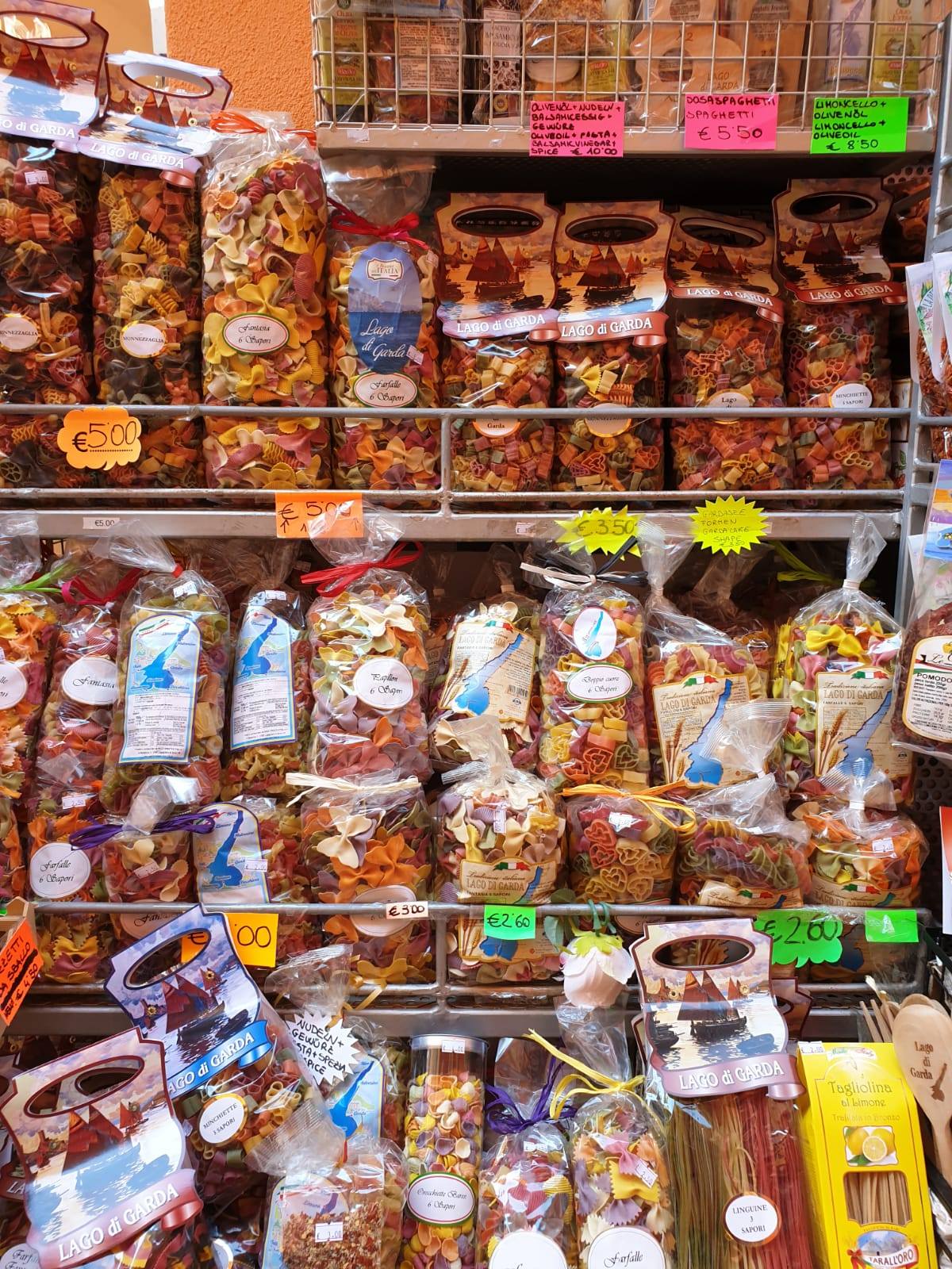 가르다 호수의 명물인 알록달록 스파게티 누들. 우리도 한 봉지 사서 끓여먹었음.