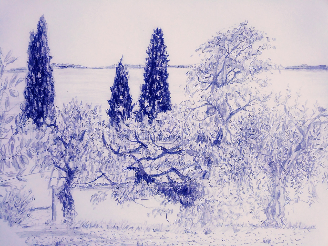 그림을 그릴 사람이 아닌데 뭣 때문에 필을 받았는지 저도 도통 모르겠어요. 원래는 그날 국철 타고 놀러 가기로 했거든요. 남편이 세 시간 그림 그리는 동안 저는 빨래를 하고 청소를 했습니다. 저녁땐 모깃불을 피워서 모기들을 내쫓았고요.