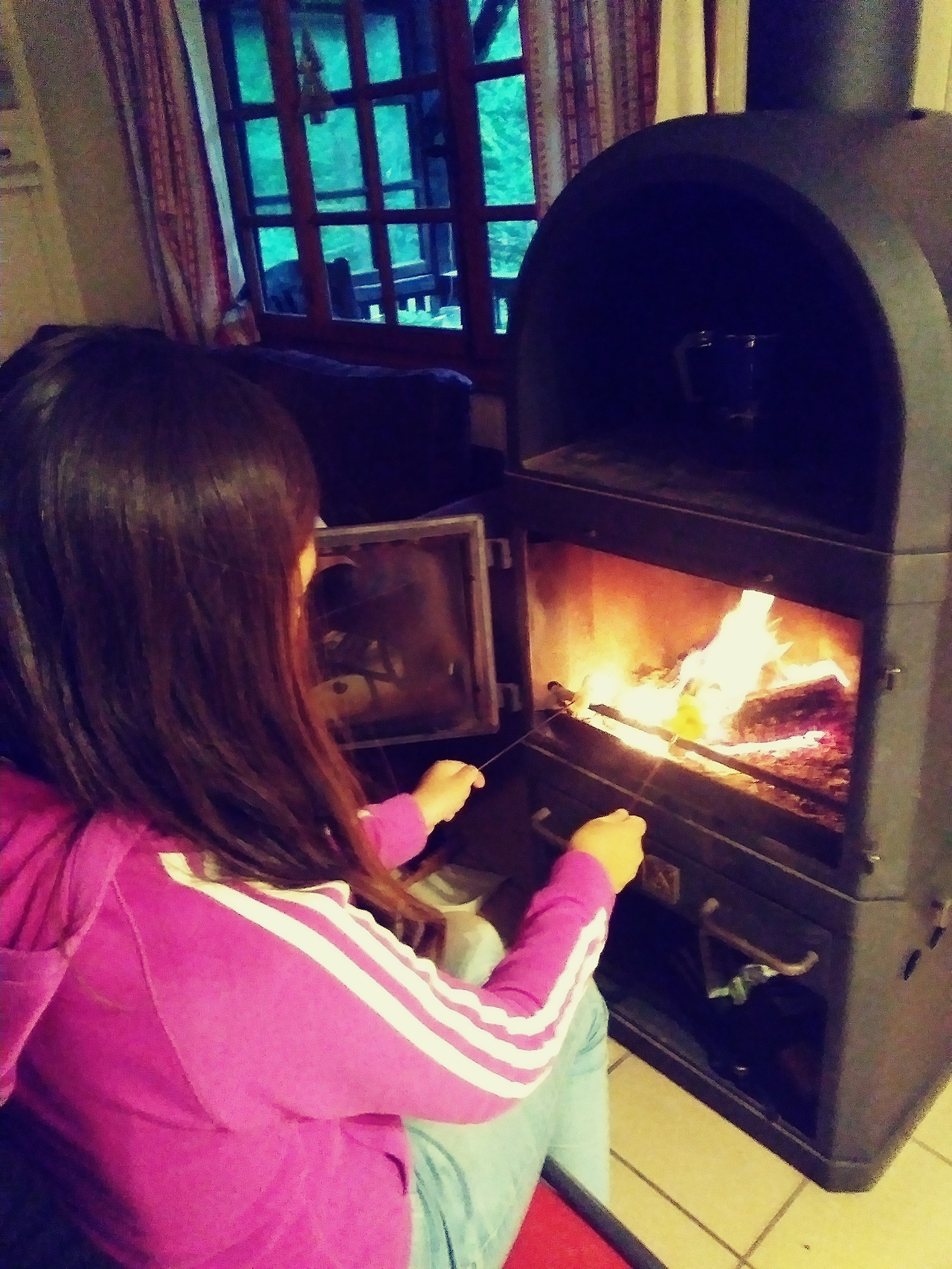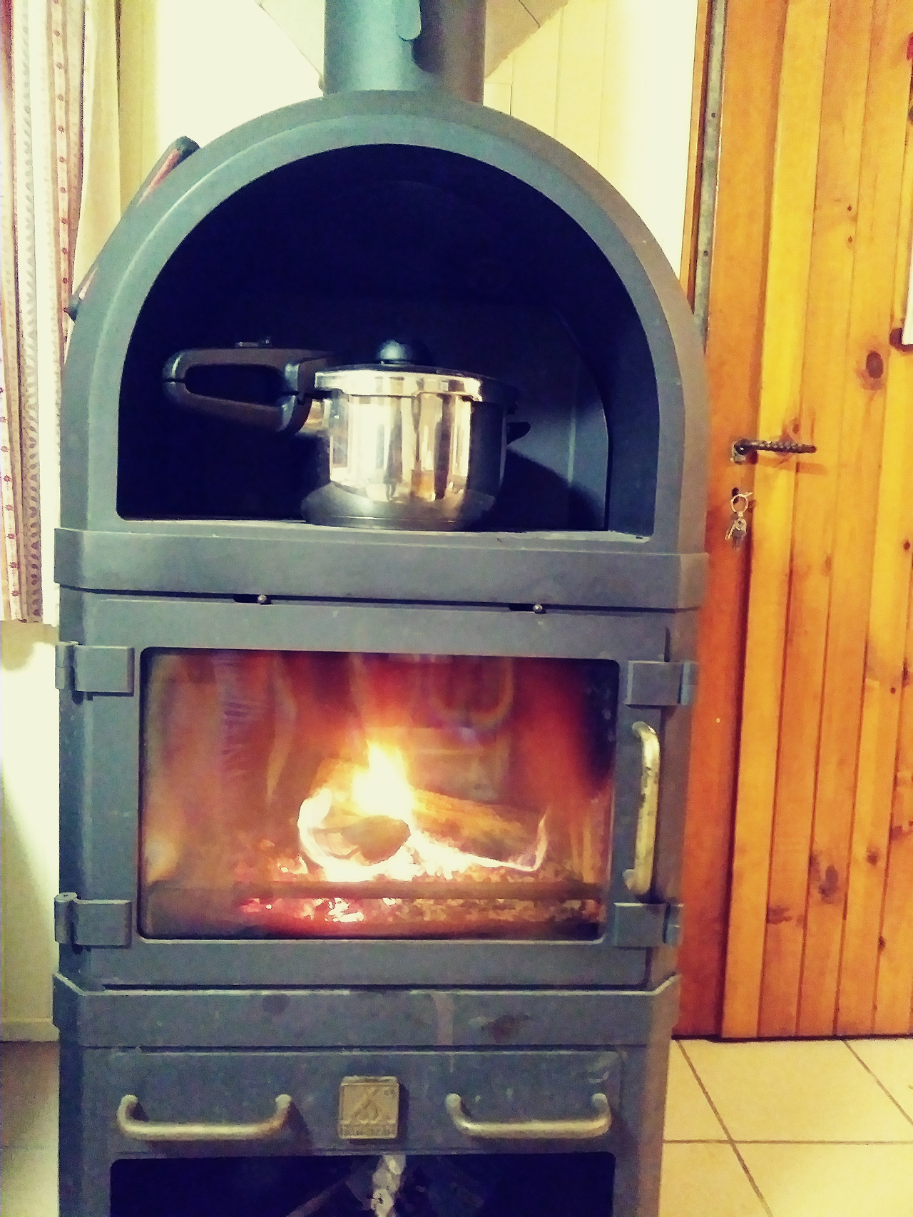 압력밥솥에선 물이 끓고 벽난로에선 감자가 익어가는 중.