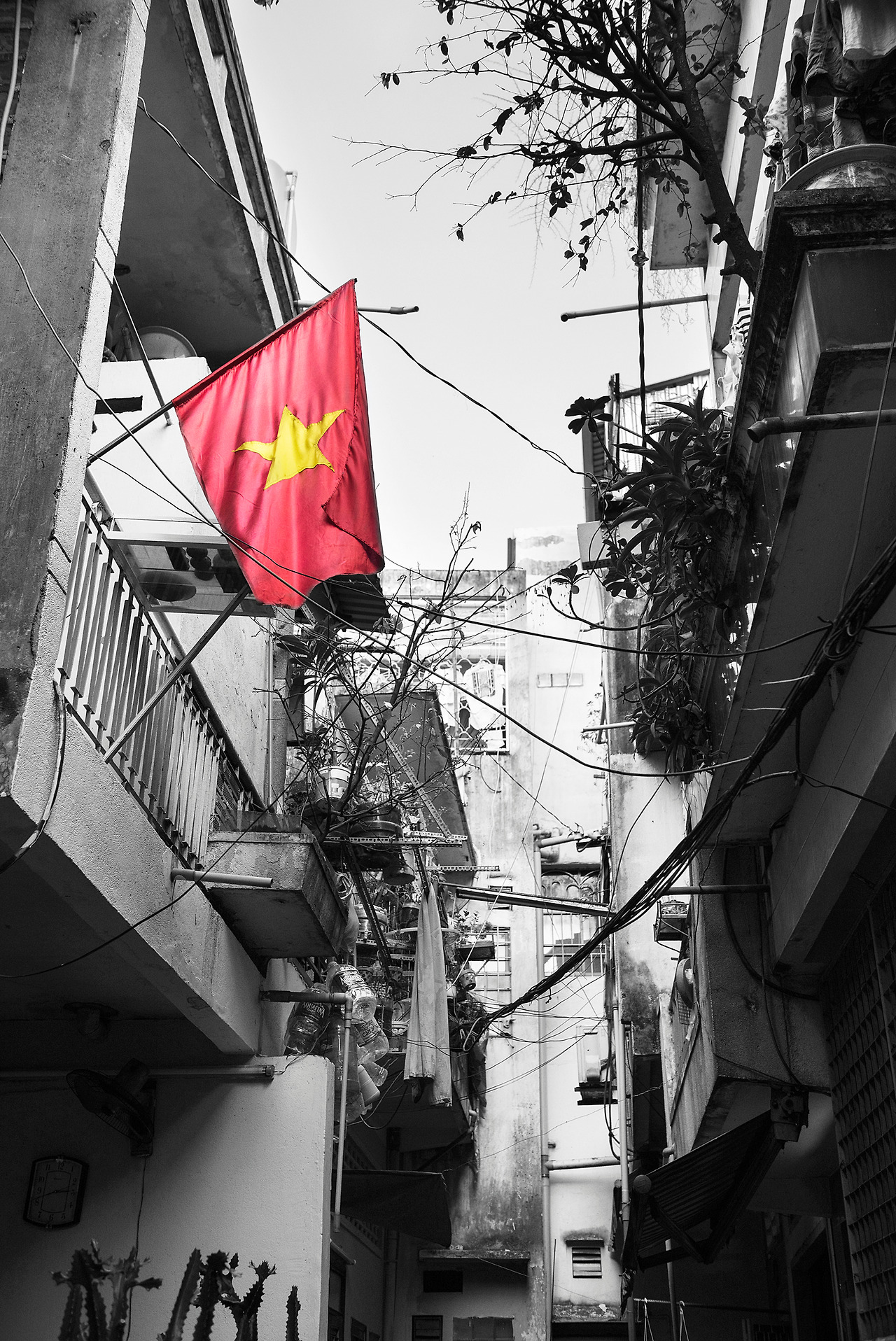 빨간 베트남 국기가 인상적인 골목...