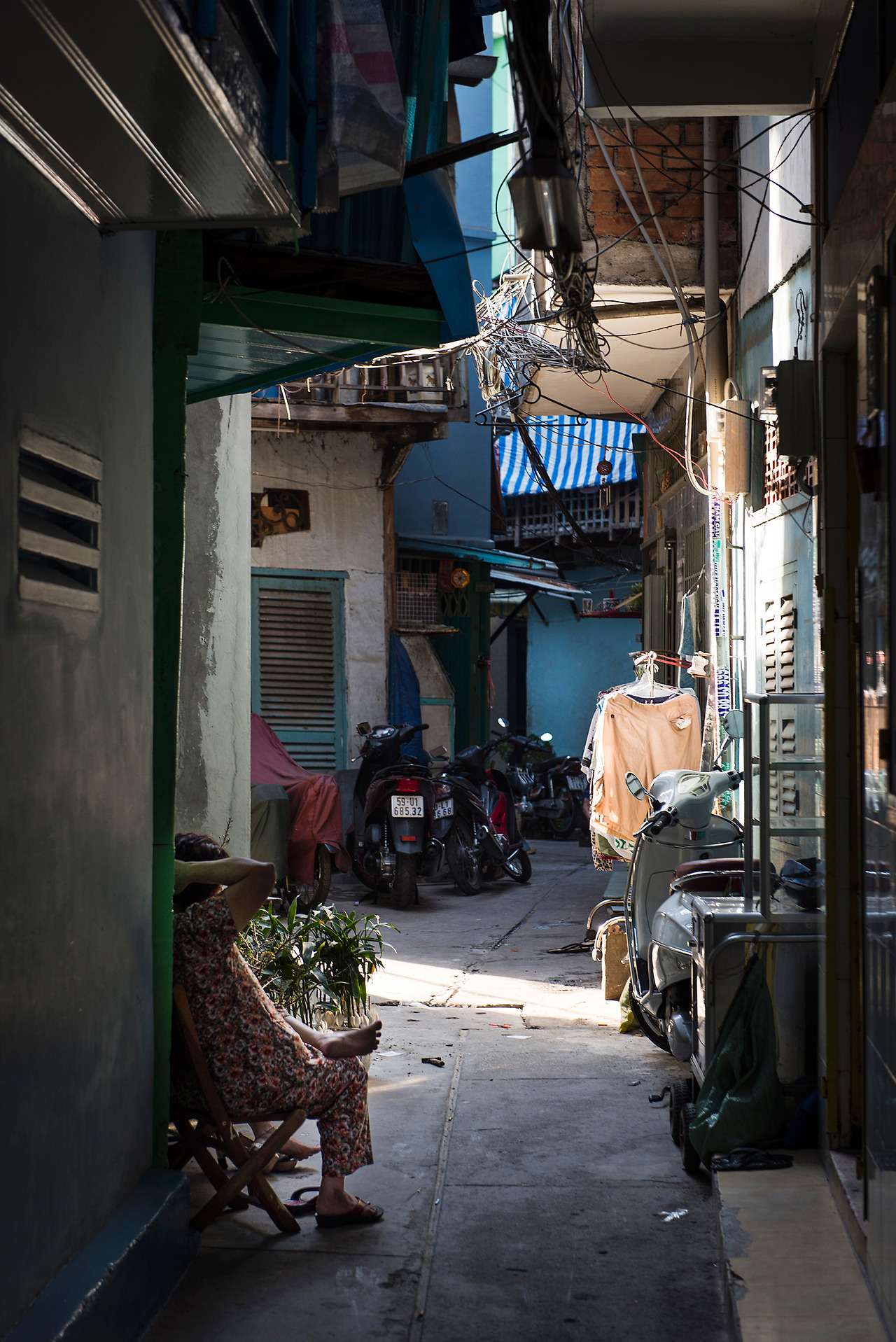베트남 골목은 빨래와 오토바이가 상징적인 듯 보입니다.