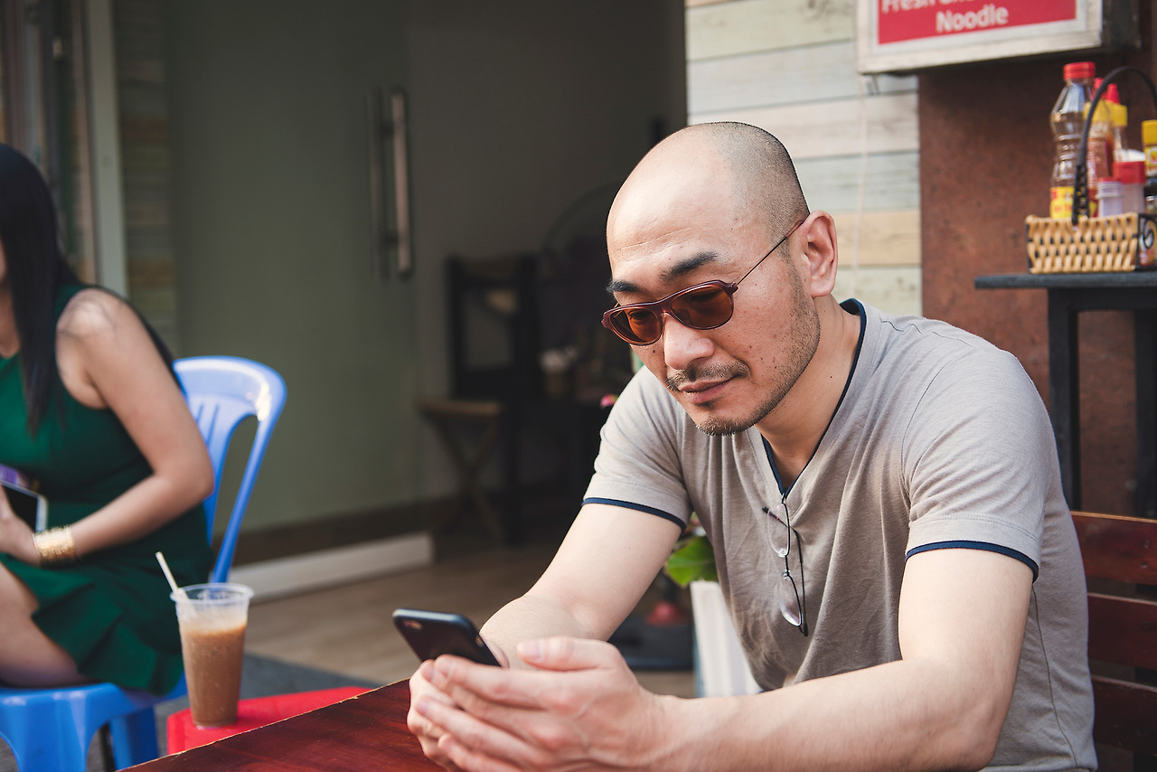 햇살을 피해서 한가로이 오후를 즐기는 할아버지..