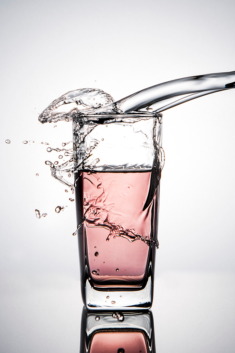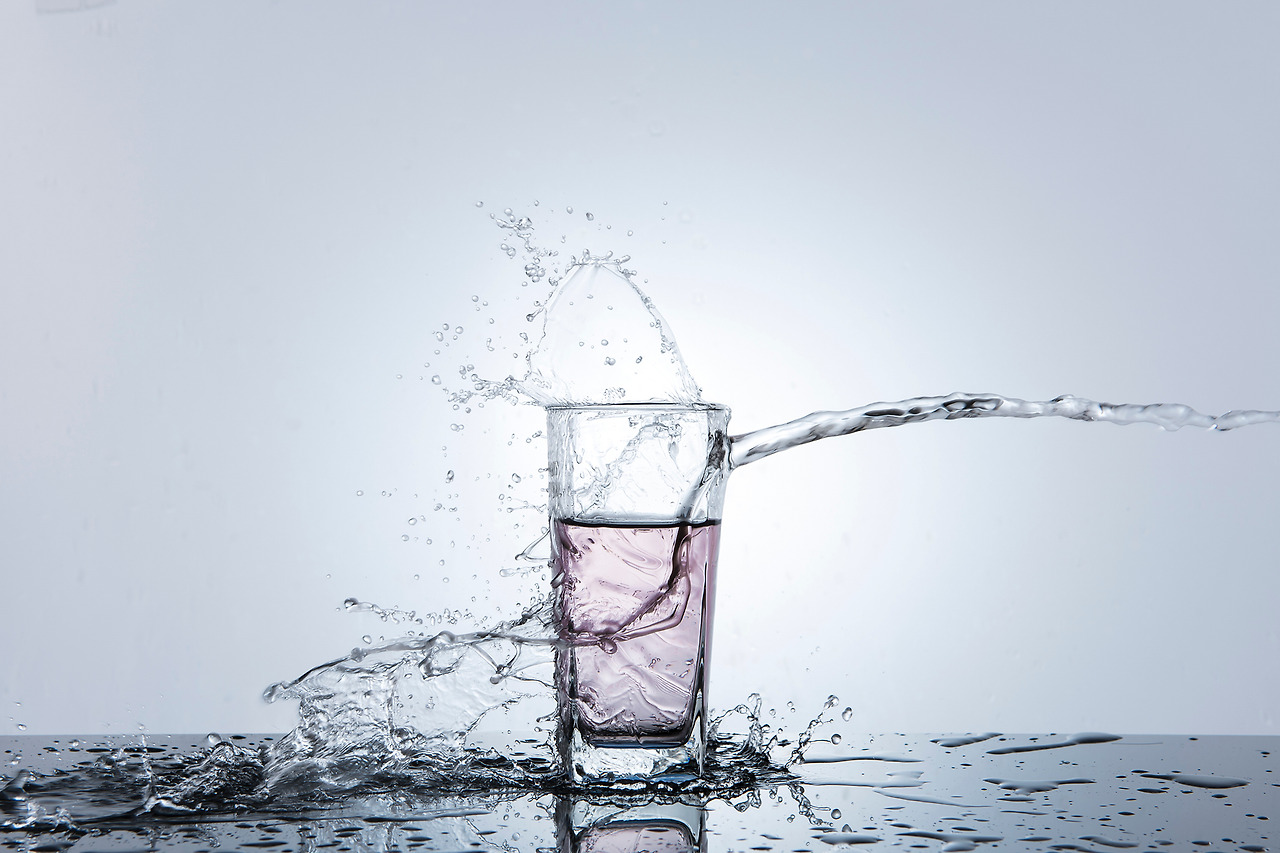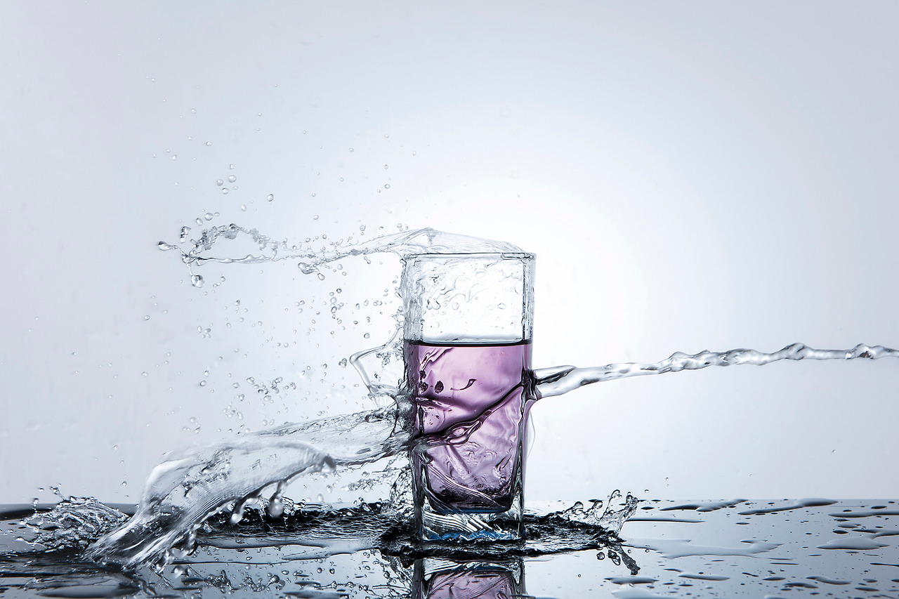 빠른 스피드로 움직여서 맞고 팅겨 나오는 물방울들을 빠르게 포착해 냅니다.