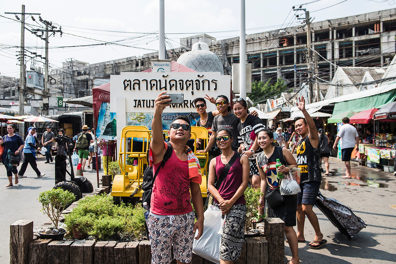 드디어 짝투짝 시장 입구...한무리의 관광객들이 사진을 찍고 있네요~