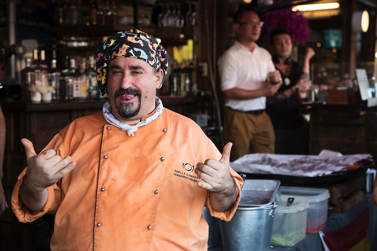 이 빠에야를 다 소진한 다음 다시 쉐프가 다시 요리를 시작합니다.