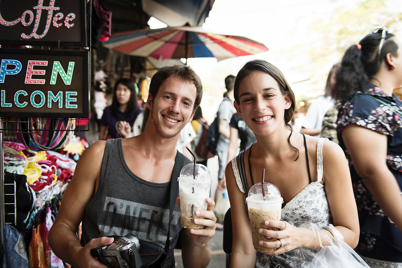 잠시 더위 식힐 겸 아이스커피 한잔 하면서 쉬다가 만난 웃는 모습이 참 좋은 커플~
