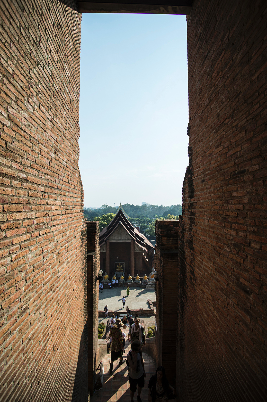 사원 안쪽에서 바깥쪽으로 나가는 계단의 모습..