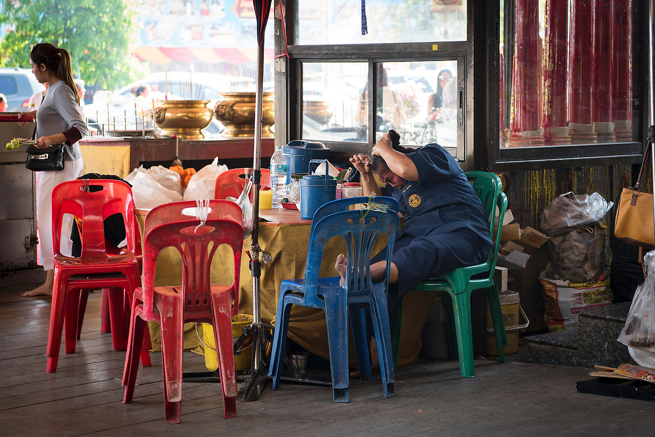 향에 불을 붙여서 자신의 소원을 빌고 금박을 자신이 태어난 요일의 불상에 붙이더라구요.