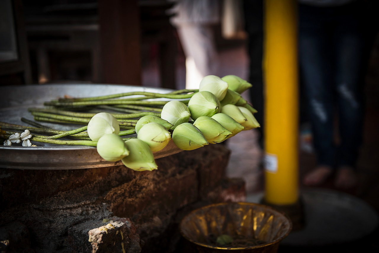 입구에서 어느정도의 비용을 지불하면 아직 피지 않은 연꽃봉우리와 2개의 향 그리고 금박을 나눠줍니다.