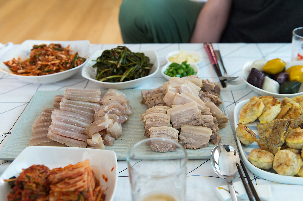 삼겹살과 목살을 섞어서 만든 홍어 삼합용 수육~