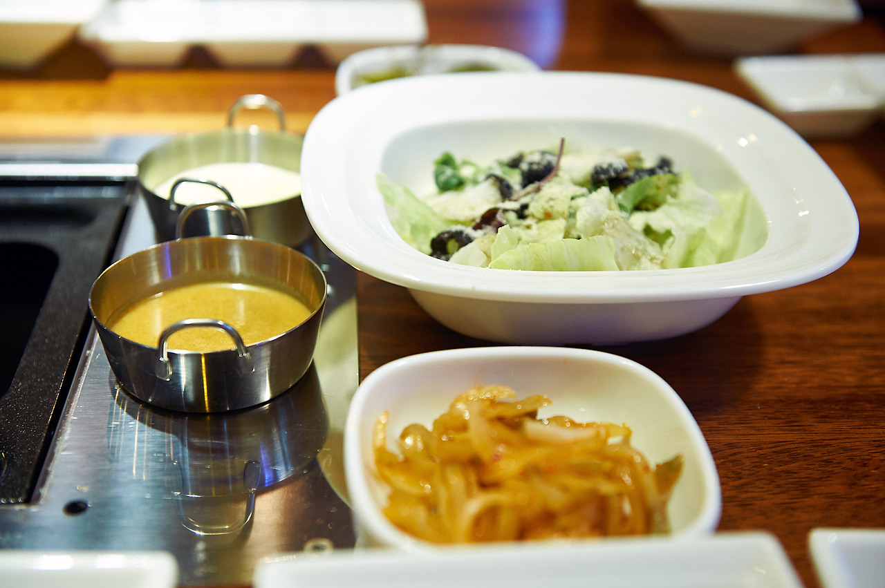 일행들 다 도착해서 주문하자 테이블 셋팅을 해주시네요~ 쨔샤이하고 셀러드 그리고