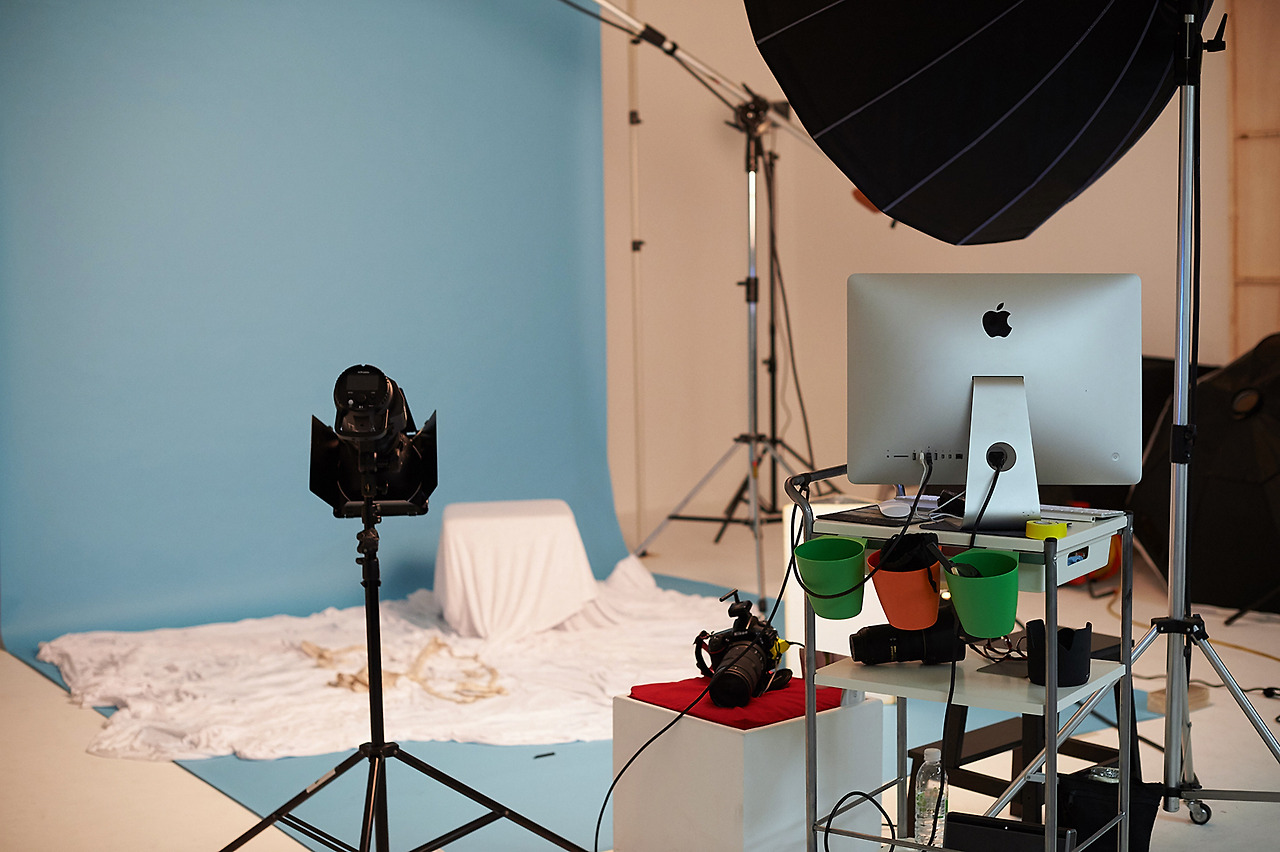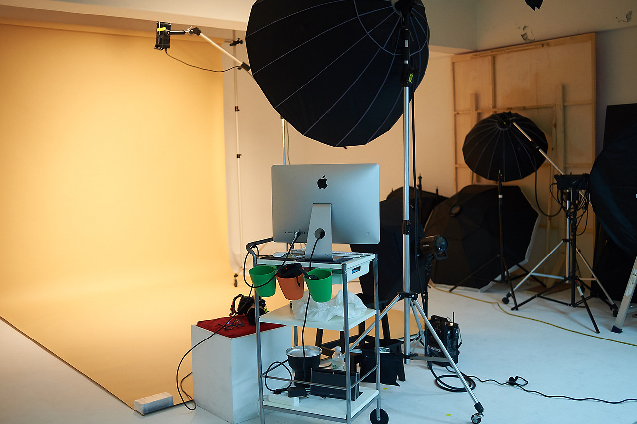 그러는 사이 스튜디오에서는 조명과 배경 셋팅에 들어갑니다.
