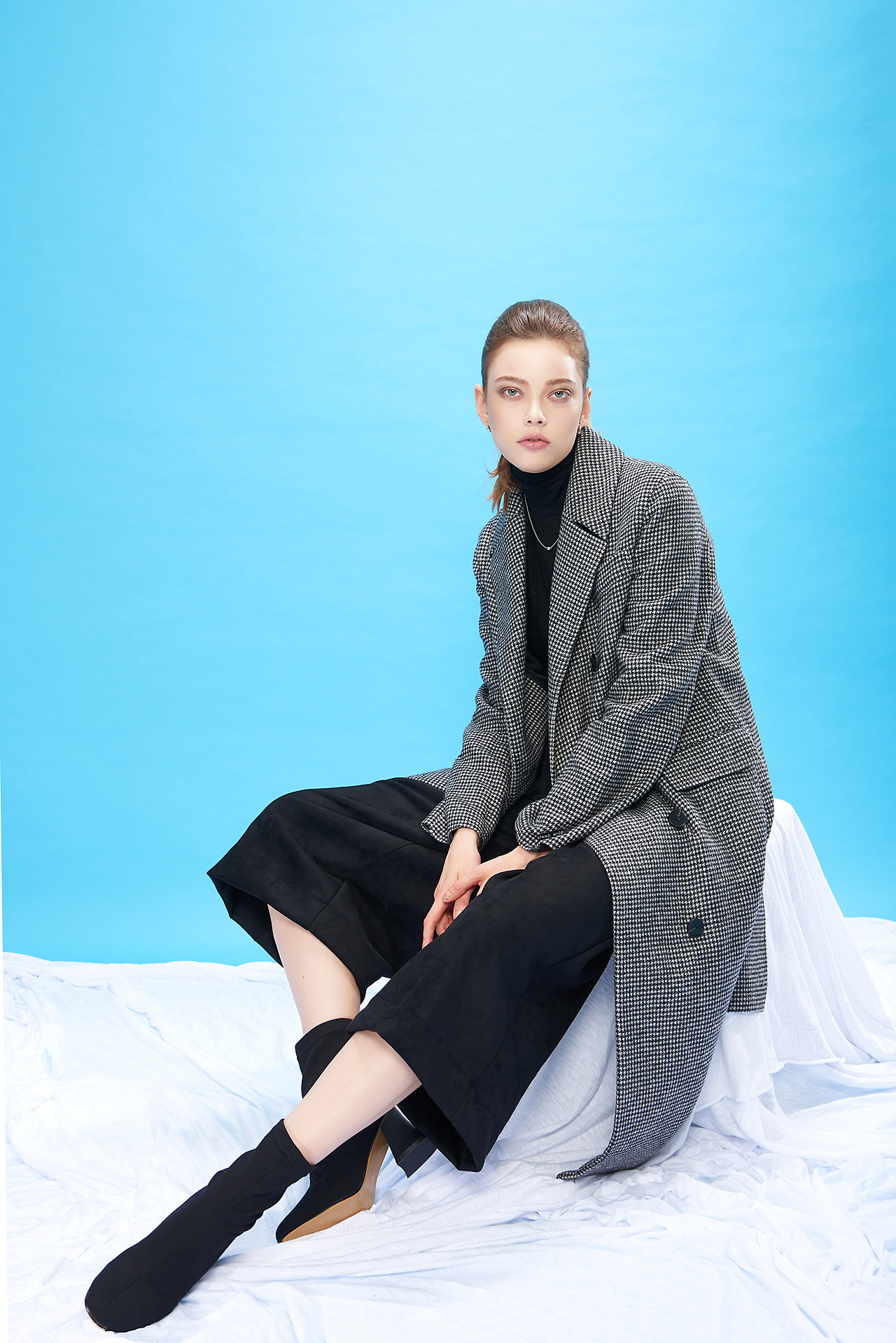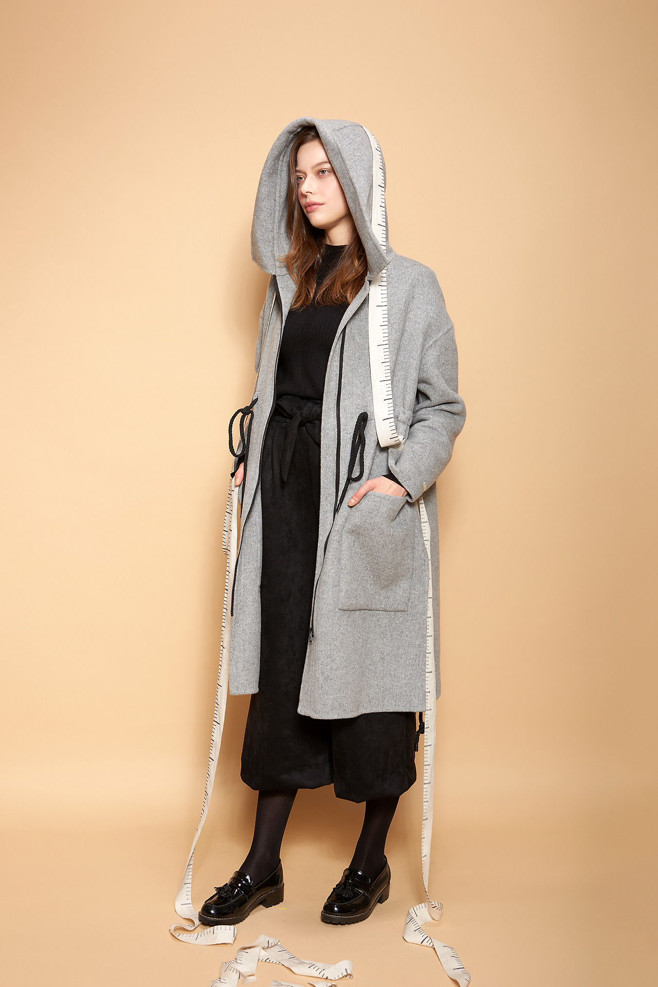 실내에서 두꺼운 겨울옷을 입고 촬영하느라 모델은 고생을 합니다.