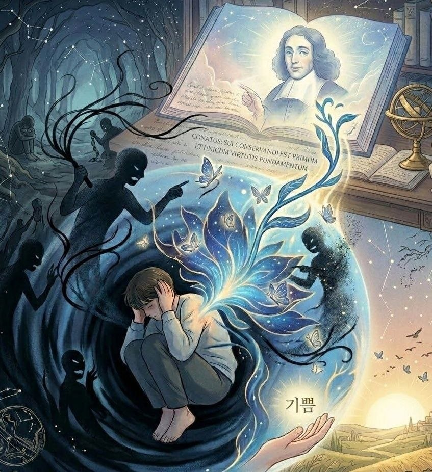 스피노자는 인간을 포함한 세상의 모든 존재가 자기 자신을 보존하고, 그 존재의 힘을 확장하려는 본질적인 욕망을 가지고 있다고 보았습니다. 그는 이 강력한 삶의 에너지를 '코나투스(Conatus)'라고 불렀습니다. 쉽게 말해, 내 안에서 팔딱이며 살아 숨 쉬는 '생명력'이자 '존재의 관성'인 셈이죠.
