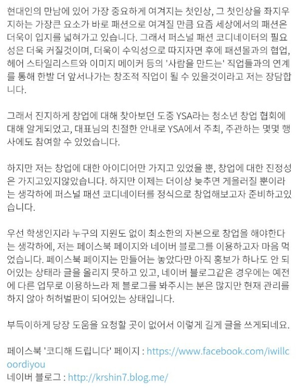 1) 패션 코디가 필요한 사람이 카카오톡, 페이스북 등을 통하여 우리 측에 코디 문의를 한다.
